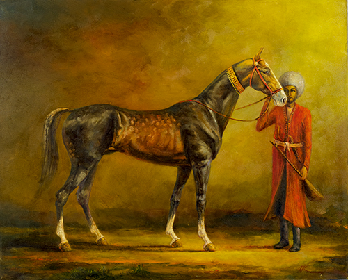 伊杉古力是土庫(kù)曼斯坦當(dāng)代以畫(huà)馬著名的油畫(huà)家,其畫(huà)馬作品多以阿哈爾捷金馬為題材,構(gòu)思巧妙,造形準(zhǔn)確,色調(diào)渾厚,作品無(wú)不體現(xiàn)畫(huà)家對(duì)馬細(xì)致入微的觀察和濃濃的感情。 “金黃的毛發(fā)像被初升的朝陽(yáng)浸過(guò),輝映出各種不同的暖色。我用柔軟的毛刷仔細(xì)描繪阿哈爾捷金馬每一分肌肉的線條,感受它的力量與美麗?!币辽脊帕Φ鸟R畫(huà)作品在土庫(kù)曼斯坦乃至中亞地區(qū)有很大的影響力,就連土庫(kù)曼斯坦總統(tǒng)也是他作品的收藏者。 《土庫(kù)曼人》的構(gòu)思源于土庫(kù)曼斯坦人是世界上對(duì)馬最寵愛(ài)的民族,他們認(rèn)為,阿哈爾捷金馬優(yōu)雅的身姿,高傲的頭顱,桀驁不馴的性格,正是土庫(kù)曼民族精神的完美體現(xiàn)。一把琴、一匹駿馬,常??梢月?lián)想到有著英雄情結(jié)的土庫(kù)曼人。 文/伊杉古力耶夫伊杉古力 編譯/李蒙 |