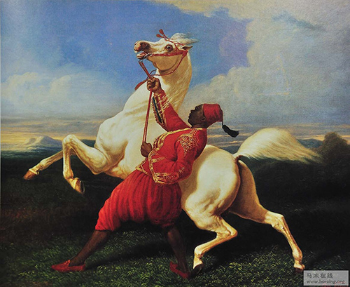 卡爾勒·韋爾內(nèi)(1758-1836) 牽阿拉伯種馬的土耳其馬工,油畫。 現(xiàn)由美國弗吉尼亞州阿珀維爾的保羅·梅隆夫婦私人收藏 卡爾勒·韋爾內(nèi)出生在法國波爾多的一個藝術(shù)世家,他的父親約瑟夫·克勞德·韋爾內(nèi)同樣以擅長油畫而出名。卡爾勒年僅24 歲便贏得了法國國家藝術(shù)獎學(xué)金“羅馬大獎”,該獎項獲得者可以得到法國國王資助,前往藝術(shù)之都羅馬進行深造。他年輕時一度熱衷法國大革命,革命后期卻因其大氣磅礴的油畫風(fēng)格深得拿破侖賞識。1808 年,50 歲的韋爾內(nèi)被拿破侖授予“法國榮譽軍團勛章”之后,他成為了國王路易十七的御用畫家。 卡爾勒·韋爾內(nèi)是當(dāng)時法國享有盛名的油畫和石版畫家,同時他還是一個熱心的馬術(shù)愛好者。他的作品里展現(xiàn)了馬匹在各種狀態(tài)下的颯爽英姿,諸如賽馬、狩獵或者戰(zhàn)爭中馬的肖像。在他后期的作品里,他創(chuàng)作了大量展現(xiàn)當(dāng)時市井風(fēng)俗的版畫,描繪了彼時法國的馬匹交易市場以及人情百態(tài)。 他的兒子賀拉斯·韋爾內(nèi)延續(xù)了家族的藝術(shù)基因,日后同樣成為了聞名法國的畫家,其成就在某種程度上甚至超過了他的父親。 這幅作品里,身著一襲紅衣的土耳其馬工與潔白的阿拉伯馬構(gòu)成了強烈的視覺沖擊?;蛟S是馬匹很久沒有出來透氣了,也或許是紅色讓馬匹興奮不已,油畫中的馬匹前肢高舉,一看就是很不安分的樣子。這個時候,連身體健壯的馬工也不得不微微后傾身體,拉緊韁繩,要不還真是難以控制這亢奮的家伙。 文/田春 |