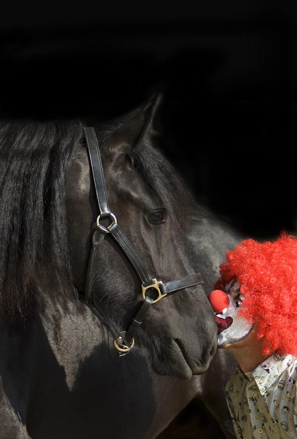 身著彩衣,臉涂白粉,博眾人一樂(lè),強(qiáng)顏歡笑乃是丑角的本份。出生于安哥拉并在葡萄牙和意大利生活多年的馬專業(yè)攝影師Paula da Silva 對(duì)這一形象頗有感觸,積聚靈感創(chuàng)作了此系列作品。近3 個(gè)小時(shí)的拍攝是伴隨著帕瓦羅蒂美妙男高音演繹的二幕歌劇《丑角》(Pagliacci)而完成的。對(duì)于Paula 來(lái)說(shuō),音樂(lè)為作品創(chuàng)作烘托并渲染了氣氛。歌劇中,馬戲團(tuán)的老板Canio塑造的小丑形象已經(jīng)成為強(qiáng)顏歡笑的范本。他在臉面丟盡時(shí),才被迫取下“面具”,因妒嫉殺死了妻子;劇中小丑宣布:“演出現(xiàn)在結(jié)束!”,這句話,戲里戲外,都一樣有深意——戲里的表演已經(jīng)完結(jié),接下來(lái)進(jìn)入現(xiàn)實(shí),我們換好另一副面具,準(zhǔn)備取悅或被取悅。 文藝復(fù)興時(shí)期,英語(yǔ)中“面具”一詞的拉丁語(yǔ)源“person-a”的詞尾慘遭切除,蛻變?yōu)檎螌W(xué)用語(yǔ)“個(gè)人”,而隨后英語(yǔ)以及德語(yǔ)、法語(yǔ)、意大利語(yǔ)等又從阿拉伯語(yǔ)中引入了“mask”這樣一個(gè)幾乎空白的、不富有歷史色彩的詞匯作為替補(bǔ)用詞。面具扮演在歐洲戲劇舞臺(tái)上逐漸消失,唯有小丑涂脂抹粉的臉上還殘存著面具的痕跡。直到20 世紀(jì)初,“persona”首先作為一個(gè)心理學(xué)術(shù)語(yǔ)得以重現(xiàn),意為“人格面具”。 在Paula 眼中,我們每個(gè)人都有一張“小丑面具”或者說(shuō)“人格面具”。生命是一場(chǎng)寂寥的馬戲,我們孤獨(dú)地表演著自己?!拔覀兠總€(gè)人都是小丑,無(wú)論是馬主、騎手、訓(xùn)馬師還是其他的普通人,在特定的場(chǎng)合,我們都為自己準(zhǔn)備好了形形色色的面具和偽裝,原因很簡(jiǎn)單,我們想讓自己看起來(lái)更優(yōu)越?!盤aula 這樣對(duì)我說(shuō)。戴著面具做人是當(dāng)代人在社會(huì)關(guān)系中真實(shí)的一種體現(xiàn)。人們用面具掩蓋自己的真實(shí)思想,有時(shí)面具讓我們免受傷害,有時(shí)可以供我們釋放欲望。在人際交往時(shí),我們冒充內(nèi)行、冒充文化貴族,以低調(diào)的話語(yǔ)贏得聊天對(duì)象的尊敬和崇拜,裝深沉,裝睿智,裝博學(xué),裝出“范兒”來(lái),期望通過(guò)外部的標(biāo)簽、身份來(lái)標(biāo)示自己的與眾不同。 然而,在Paula 這一系列作品中,馬并不會(huì)意識(shí)到面具的價(jià)值,它不知道主人的社會(huì)身份只是一個(gè)卑微的小丑,同樣,它也看不到人們用來(lái)偽裝和隱藏的面具。在馬的世界里,我們也不過(guò)是長(zhǎng)著兩條胳膊兩條腿的人。無(wú)論我們富裕、有文化、健康或是美麗與否,馬都不會(huì)理會(huì)。我們的面具在它們面前就猶如形同虛設(shè)。如果我們感到畏懼與害怕,不管我們多么故作鎮(zhèn)定,身體里充斥的腎上腺素、走路的形態(tài)、騎坐、持韁的方式,在馬靈敏的嗅覺(jué)、敏銳的觀察和感知能力之下,早已無(wú)處遁形。在馬的面前,我們真實(shí)地存在著。 文/趙穎 圖/Paula da Silva |