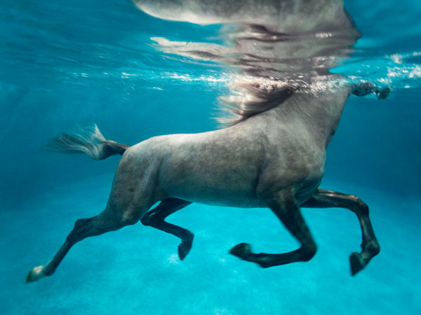 Vanessa von Zitzewitz 的攝影事業(yè)起步于1991 年, 當(dāng)她剛從位于法國(guó)巴黎的帕森設(shè)計(jì)學(xué)院畢業(yè)后不久,這位德國(guó)攝影師就很快獲得了巨大的成功。她的作品細(xì)致入微,品質(zhì)較高,贏得了許多諸如Cartier、Graff 和Boucheron 等奢侈品牌的青睞, 也曾為CarlaBruni、Mick Jagger、Luciano Pavarotti 和Monica Bellucci 等名人拍過照片。 她擁有一身在陽光下曬過的小麥色皮膚,一頭淡黃色的濃密頭發(fā),炯炯有神的雙眸,精通多國(guó)語言,做事雷厲風(fēng)行且富有魅力,Vanessa無疑是一位綻放在上流社會(huì)的漂亮女人。然而,她卻曾像法國(guó)圣西爾軍校學(xué)生一樣在布列塔尼荊棘叢生的荒野中艱難地長(zhǎng)途行軍。她還曾以人道主義者的身份游歷世界,通過拍攝作品,至今仍在救助300多名曼谷的孤兒。因其付出的努力,2008 年,她受到聯(lián)合國(guó)教科文組織的頒獎(jiǎng)。 11 歲時(shí),Vanessa 就迷戀上了騎馬,開始參加馬術(shù)比賽。但是直到2010 年,她才開始用相機(jī)記錄有關(guān)馬的一切。承蒙卡塔爾埃米爾Sheikh Hamad bin Khalifa Al-Thani 及其女兒兼伊斯蘭藝術(shù)博物館館長(zhǎng)的恩準(zhǔn),Vanessa 得以有幸前往Al Shaqab 農(nóng)場(chǎng)的馬廄拍攝優(yōu)良的純種阿拉伯馬。十九世紀(jì),卡塔爾人在Al Shaqab 這個(gè)地方打敗了土耳其人并脫離了奧斯曼帝國(guó)的統(tǒng)治,該農(nóng)場(chǎng)是為了紀(jì)念這場(chǎng)重大戰(zhàn)役而得名。Vanessa 應(yīng)邀拍攝了《卡塔爾的馬——Al Shaqab農(nóng)場(chǎng)的傳奇》這一作品集。 作為阿拉伯社會(huì)不可或缺的組成部分,阿拉伯馬不僅是優(yōu)雅和權(quán)勢(shì)活生生的體現(xiàn),還象征著文化、財(cái)富。在卡塔爾,馬匹的繁育和訓(xùn)練已然不僅是一門科學(xué),也是一門藝術(shù)。按著Vanessa 的話說,她是在參觀Al Shaqab 農(nóng)場(chǎng)時(shí)愛上了阿拉伯的馬:“它們與場(chǎng)地障礙的參賽運(yùn)動(dòng)馬太不一樣了,訓(xùn)練它們不是為了騎,就是為了欣賞美,有時(shí),它們精致美好, 宛若波斯人小巧精致的藝術(shù)品?!?作品集記錄了農(nóng)場(chǎng)上多彩的生活狀態(tài),照片中既有給馬匹喂食、梳理、釘蹄等日常照料的畫面,也記錄了馬在沙漠中飛馳、馬駒出生等令人難忘的時(shí)刻。 鏡頭下,這些日常生活中的場(chǎng)景被幻化成了如詩如畫的美景。像馬匹在水中訓(xùn)練這樣平常的事情也被升華為一件藝術(shù)品,成為吸引人們注意的重要作品之一。為了捕捉到馬兒在水中雕刻般俊美的“舞姿”,Vanessa戴著相機(jī)在碧藍(lán)的泳池中屏氣潛水,這才造就了圖中這幅蔚為壯觀的(在小皇宮美術(shù)館的展品規(guī)格為4 米×5 米)攝影作品。9 幅作品的組合,讓觀者情不自禁地產(chǎn)生一種伴著馬匹一同“游走”在水中的感覺。 Vanessa 無不驚喜地說:“當(dāng)我在水中和馬兒們一起訓(xùn)練的時(shí)候,我感覺自己處于一種空前的和諧氣氛中,地面上的喧鬧似乎在瞬間便被收容進(jìn)了一個(gè)密封的瓶子中,我就像眼前水中漫步的這匹馬Alzeer 一樣,擁抱著難得的靜謐悠閑?!睖嘏_麗的陽光透過水層撲面而來,光與影在瓦藍(lán)的水中融匯在一起,深深淺淺的有很多種不同的藍(lán)色,交匯成了一股令人嘆為觀止的力量,美得極具魅力。四周安靜,又充滿生氣,她和馬兒都享受著如同飛翔一般的自由和快樂。人、馬和周圍的一切相融共生,就好像彼此從沒分開過。 |