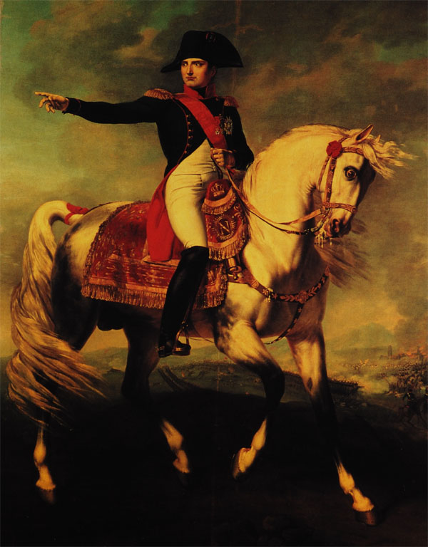 拿破侖一世的馬術畫像【1810年】 布面油畫,293×224 cm;羅馬,拿破侖博物館 圍繞拿破侖?波拿巴(1769-1821年)的坐騎有許多秘密和故事。他的坐騎中最有名的就是一匹叫做馬倫戈的矮小的白色阿拉伯馬,它也是皇帝的愛馬。1810年,拿破侖曾騎著馬倫戈獲得了馬倫戈戰(zhàn)役的勝利(便以此為其命名)。而且根據(jù)傳說,在幾乎所有其它的戰(zhàn)役中,它都是拿破侖的坐騎。 拿破侖喜歡矮小的白色阿拉伯馬。它的顏色令其在一群馬中顯得尤為突出。因此,在拿破侖的大軍中很容易辨認他的存在。他的馬廄里飼養(yǎng)了150匹駿馬,其中大多數(shù)都是矮小的白色馬。 《馬倫戈,拿破侖坐騎的神話》(2000年)的作者吉爾?漢密爾頓指出,法國的檔案材料中并未有證據(jù)證明拿破侖曾有過一匹名叫馬倫戈的坐騎。但是,拿破侖常給自己的坐騎取綽號。人們假設,馬倫戈有可能是一匹名叫阿里(或阿利)的馬的愛稱。 |