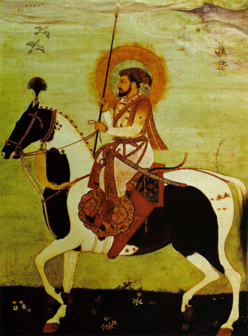 沙賈漢騎馬圖,出自沙賈漢紀(jì)念冊(cè) 沙賈漢時(shí)代(執(zhí)政時(shí)期:1628-1658年) 紙面彩墨和金箔畫(huà),38.9×25.7cm;紐約.大都會(huì)博物館 這幅沙賈漢的肖像畫(huà)無(wú)比優(yōu)美。畫(huà)中的黑色花斑馬黑白相間,體型輕盈,威嚴(yán)十足,穿金戴銀,帶著鑲有華麗的裝飾品的馬鞍、籠頭。這才配得上這位儀表堂堂的騎師。 這匹駿馬斑紋獨(dú)特,易于辨認(rèn)。幾種不同的小裝飾畫(huà)上都繪有沙賈漢(以建造泰姬陵而聞名天下)乘騎它的形象。其中一幅繪有1635年,沙賈漢的三個(gè)幼子沙舒加、奧朗則布和穆拉德巴克什中的一個(gè)乘騎它的形象。這匹駿馬經(jīng)常出現(xiàn),意味著它被這個(gè)家族視為珍寶??梢圆聹y(cè),它也是這個(gè)地區(qū)最好的駿馬之一。這匹出色的駿馬很有可能是卡提阿瓦馬。這一品種的馬深受喜愛(ài),大約起源于莫臥爾皇朝時(shí)代(1536 -1857年)。這種馬以其耳朵可以靈活彎曲,耐力突出而出名。這種馬向來(lái)由王公貴族培育,往往作為家畜飼養(yǎng)。直到今天,這一品種的馬在其原產(chǎn)地古吉拉特邦仍廣受重視與追求,現(xiàn)主要用于警方騎乘。 |