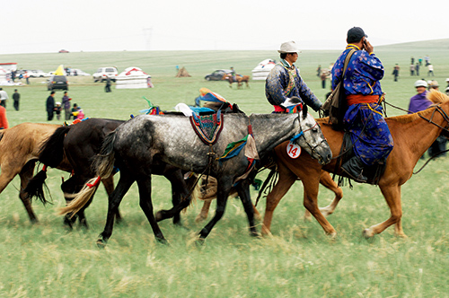 “那達(dá)慕”大會(huì),意為“娛樂”“游戲”的盛會(huì),那達(dá)慕大會(huì)是蒙古族人民一年一度的傳統(tǒng)節(jié)日,在每年七、八月這一水草豐茂、牲畜肥壯、秋高氣爽的黃金季節(jié)舉行。那達(dá)慕大會(huì)分為大、中、小三種類型。大型那達(dá)慕,摔跤選手為512名,駿馬300匹左右,會(huì)期7~10 天;中型那達(dá)慕,摔跤手256名,馬100~150匹,會(huì)期5~7天;小型那達(dá)慕,摔跤手64名或128名,馬30或50匹左右,會(huì)期3~5天。無論何種民族與宗教信仰的人,均可報(bào)名參加。 那達(dá)慕有久遠(yuǎn)的歷史。據(jù)銘刻在石崖上的《成吉思汗石文》記載:“那達(dá)慕”起源于蒙古汗國建立初期,早在公元1206年,成吉思汗被推舉為蒙古大汗時(shí),他為了檢閱自己的部隊(duì),維護(hù)和分配草場,每年7—8月間舉行“大忽力革臺(tái)”(大聚會(huì)),將各個(gè)部落的首領(lǐng)召集在一起,為表示團(tuán)結(jié)友誼和祈慶豐收,都要舉行那達(dá)慕。起初只舉行射箭、賽馬或摔跤的某一項(xiàng)比賽,到元、明時(shí),射箭、賽馬、摔跤比賽結(jié)合在一起,成為固定形式。后來蒙古族人亦簡稱此三項(xiàng)運(yùn)動(dòng)為男子三項(xiàng),并成為那達(dá)慕的基礎(chǔ)項(xiàng)目。到了清代,那達(dá)慕逐步變成了官辦的、有組織、有目的的游藝活動(dòng),半年、一年或兩年舉行一次,對(duì)競技優(yōu)勝者分別給予馬、駱駝、牛、羊和磚茶、綢緞等物品的獎(jiǎng)勵(lì)。那時(shí)那達(dá)慕大會(huì)期間要進(jìn)行大規(guī)模祭祀活動(dòng),喇嘛們要焚香點(diǎn)燈,念經(jīng)頌佛,祈求神靈保佑,消災(zāi)消難。 這其中,要屬男子三項(xiàng)——射箭、賽馬、摔跤比賽,即那達(dá)慕的基礎(chǔ)項(xiàng)目最為引人關(guān)注。 摔跤 摔跤,是蒙古族民間流傳最廣、也是蒙古族人最喜好的一種游戲。在古代,大草原上常以這種形式選拔英雄,蒙古貴族也常以這種形式選擇女婿,因?yàn)樵诿晒湃说男哪恐?,摔跤不僅是力量的展現(xiàn),同時(shí)也是智力的較量。 蒙古語稱摔跤為“博克偶巴依勒德呼”,稱摔跤手為“博克慶”。蒙古族的摔跤有其獨(dú)特的服裝、規(guī)則和方法,因此也叫蒙古式摔跤。 摔跤手要身著摔跤服“昭德格”。其坎肩多用香牛皮或鹿皮、駝皮制作,皮坎肩上有鑲包,亦稱泡釘,以銅或銀制作,便于對(duì)方抓緊。蒙古族的摔跤有其特點(diǎn):按蒙古族傳統(tǒng)習(xí)俗,摔跤運(yùn)動(dòng)員不受地區(qū)、體重的限制,采用淘汰制,一跤定勝負(fù)。摔跤比賽是兩人對(duì)陣,赤手空拳進(jìn)行的。兩個(gè)摔跤手身披著有老虎圖像的毛毯,從兩邊人群中搖搖擺擺甩著胳膊大步出場。在傳統(tǒng)習(xí)慣上,摔跤手要披老虎皮上場,表示他們像老虎一樣天下無敵。摔跤手上場時(shí),兩邊觀眾各自唱著自己摔跤手的贊歌,待裁判員掀掉老虎皮后,摔跤手才開始交手。現(xiàn)在的儀式已經(jīng)簡化了。 賽馬 賽馬是那達(dá)慕最牽動(dòng)人心的節(jié)目。由于過去蒙古族大都過著逐水草而居的游牧生活,所以馬成了這種生活方式最重要的支撐,行軍打仗、狩獵游牧、商貿(mào)交流甚至食品都離不開馬。正是基于這種生產(chǎn)生活的需要,蒙古人從小就開始練習(xí)馬術(shù),精湛的馭馬之術(shù)是每一個(gè)蒙古人、特別是蒙古男人的生存之本。蒙古族素有“馬背民族”之稱。在這樣的生產(chǎn)生活實(shí)踐基礎(chǔ)上產(chǎn)生了賽馬活動(dòng),并逐漸演變?yōu)橐环N民族體育、娛樂項(xiàng)目。 蒙古族賽馬不分男女老少均可參加,但多是15歲以下的少年,因?yàn)橐皇切『Ⅲw重輕、壓力小,二是為了從小鍛煉孩子的意志。參加馬競走的馬,必須受過特殊訓(xùn)練,四腳不能同時(shí)離地,只能走得快,不能跑得快。參加賽馬的騎手,馬匹自然是最好的,人數(shù)多少不限,少則二三十,多則可達(dá)百余人。一起上陣,直線賽跑,其距離40、60、80里不等。為了減少馬的負(fù)荷量,不論老少,大都不備馬鞍,不穿靴襪,只著華麗彩衣,配上長長彩帶,襟飄帶舞,顯得格外英武。每個(gè)項(xiàng)目取前三名授獎(jiǎng)。 射箭 那達(dá)慕大會(huì)另一個(gè)重要項(xiàng)目是射箭比賽。弓箭最初是蒙古人的狩獵工具,后來用于部落戰(zhàn)爭。成吉思汗就是憑借他疾風(fēng)驟雨般的騎射軍隊(duì)開辟、統(tǒng)一了他的疆域,《元史》即稱蒙古族“用弓馬之利得天下”。蒙古人自古崇尚弓箭,喜好騎射,把它視為男子漢的象征和標(biāo)志,當(dāng)作他們隨身攜帶的武器和吉祥物。所以射箭成了那達(dá)慕大會(huì)的主要比賽內(nèi)容。比賽時(shí),只見一個(gè)個(gè)驍勇善射的勇士身著窄袖緊身袍,飛騎張弓搭箭,數(shù)發(fā)勁弩支支直中靶心,令人眼界大開。 蒙古族射箭比賽分近射、騎射、遠(yuǎn)射三種,有25步、50步、100步之分。近射時(shí),射手立地,待裁判發(fā)令后,放箭射向箭靶,優(yōu)者為勝;騎射時(shí),射手騎馬上,在馬跑動(dòng)中發(fā)箭,優(yōu)者為勝。比賽不分男女老少,凡參加者都自備馬匹和弓箭,弓箭的樣式、弓的拉力以及箭的長度和重量均不限。比賽的規(guī)則是三輪九箭,即每人每輪只許射三支箭,以中靶箭數(shù)的多少定前三名。 那達(dá)慕已有近八百年的歷史,一直在草原上流傳和發(fā)展,深受各族群眾的喜愛,成為了蒙古族文化傳統(tǒ