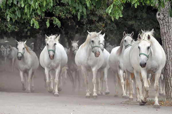 目前,全世界純種的利皮扎馬僅有3000 匹,該馬是近四百年來所出現(xiàn)的極具代表性的優(yōu)秀品種,優(yōu)異的利皮扎馬不僅流露出美麗高貴的氣質(zhì),而且還難能可貴地兼具了勇敢的特性和溫馴的脾氣,以及高超的學(xué)習(xí)能力。利皮扎馬是高等馬術(shù)用馬,是力量與優(yōu)美合二為一的象征。 名字的來歷 英語的利皮扎馬(也音譯為“利比扎馬”)是:Lipizzan,也寫成Lipizzaner,或Karster(卡斯特馬)。叫利皮扎馬是以斯洛文尼亞的利皮卡種馬場(Lipica Stud)而命名的,卡斯特馬本是培育出利皮扎馬的親本之一,是一種當(dāng)?shù)氐胤今R種,這種馬白色、體型較小,晚熟,但又異常強壯,后來也用這個名字來代指利皮扎馬,但并不為多數(shù)人承認(rèn)。 利皮扎馬與西班牙馬術(shù)學(xué)校 除了阿拉伯馬、純血馬、阿哈捷金馬之外,利皮扎馬也是世界上最著名的馬種之一。它的名聲來自于奧地利維也納的西班牙馬術(shù)學(xué)校,而西班牙馬術(shù)學(xué)校名字的來源,并不是因為它建立于西班牙,也不是它提倡西班牙騎術(shù),只是因為利皮扎馬的祖先來自于西班牙。西班牙馬術(shù)學(xué)校是在1572 年建立的,其冬季騎術(shù)大廳是在1735 年建成的。 育種簡史 利皮扎馬是在1580 年隨著哈卜斯大公查爾斯二世(Charles II) 在現(xiàn)在的斯洛文尼亞興建利皮卡馬場而出現(xiàn)的,當(dāng)時他從伊比利亞半島進口了9 匹雄馬和24 匹雌馬,他要求保證向格拉茨的公爵馬廄和維也納的宮廷馬廄提供華麗的并以白色為主的馬。這種馬的育種主要是以西班牙馬(即安達盧西亞馬、盧西塔諾馬)為主,加入了當(dāng)?shù)卦捡R種卡斯特馬的某些基因。據(jù)研究,多數(shù)人認(rèn)為利皮扎馬高昂的步伐是承襲于西班牙馬,但也有人認(rèn)為卡斯特馬是賦予這項特色的使者。目前,利皮扎馬有8 大品系和近35 個品族。公馬的命名由兩部分組成,前部分是所屬品系的名字,后部分是母親的名字。母馬的命名取自品族的名字,且最后的字母應(yīng)為“a”。 戰(zhàn)爭中的幸存者 400 多百年來的多次戰(zhàn)爭沖突,包括拿破侖戰(zhàn)爭、兩次世界大戰(zhàn),影響了利皮扎馬的繁衍,因為只要有戰(zhàn)事威脅到這個馬場,這些馬兒就會被迫遷移。而每次遷移中,除了受盡磨難之外,勢必會有幾匹馬得要送人或是賣給其他馬場,因此一些小型的利皮扎馬場陸續(xù)出現(xiàn)。據(jù)資料記載,二戰(zhàn)期間,巴頓將軍曾挽救過利皮扎馬。因各種原因,利皮扎馬主要分布在奧地利、意大利、斯洛文尼亞、匈牙利、捷克和斯洛伐克等地。 品種特色 利皮扎馬并不高,體高多為147—157 厘米,但它們昂揚的步伐、結(jié)實的身材、有力而具彈性的動作,會讓利皮扎馬看起來比實際的身材還要大。利皮扎馬是一種晚熟而長壽的馬,許多都可以活到35 歲或是更老,不過它們一出生通常就已經(jīng)能夠展現(xiàn)高貴優(yōu)雅的氣質(zhì)。利皮扎馬是“白色”的,按照嚴(yán)格的學(xué)術(shù)定義它是“青色”變成的白色,一般剛出生時大多是黑色,部分是騮色(編者注:赤身黑鬃的馬為騮),直到五歲至八歲時會慢慢“白化”,它基本符合我國諺語所說的“七青八白”的規(guī)律。 通常來說,利皮扎馬在八個月左右,會經(jīng)歷它們一生當(dāng)中最尷尬的一段丑小鴨的歲月,而且這個丑小鴨的樣子會維持到三歲左右,在這段尷尬的期間,可憐的小馬駒很難得到族群的認(rèn)同,因為它看起來就像是個正在換毛的騾子一樣。其實在奧地利,這些年輕的利皮扎馬是要送到阿爾卑斯山的,到了三歲再把它們送下山,這時利皮扎馬就會顯現(xiàn)出它們出生時的高貴氣質(zhì),并且伴隨終老。 利皮扎馬在圍欄牧場里常常都是一副垂頭又昏睡的姿態(tài),但只要一出場或有人騎在它的背上,利皮扎馬可以立刻展現(xiàn)出活潑熱烈的情緒,頭高揚、頸彎曲、鼻孔開張,用那種不可思議的力量與優(yōu)雅做出與生俱來的騰躍動作。但如果這時有人說著溫柔的言語接近它,它卻可瞬間變成一匹溫馴又文雅的馬兒,它不僅能展現(xiàn)服從的特質(zhì),還能透露出一種體貼又想討人喜歡的心意,卻又無損于它桀驁不馴之風(fēng)采。 利皮扎馬骨骼強健有力,且絕少發(fā)生瘸拐現(xiàn)象,即使快速轉(zhuǎn)換周遭環(huán)境或飲食,它們也能適應(yīng)地非常好。也正是這種隨和的天性與適應(yīng)力,讓養(yǎng)育它們的工作可以變得很容易,而且也是因為這些特性,讓利皮扎馬可以或在歐洲各地到處行軍打仗,或在各地藏匿,可以工作到二十多歲,還可以活到三十歲以上。 騎在利皮扎馬背上是一種愉悅的體驗,它們的背寬廣柔軟,步伐活潑,有力的后軀讓它們天生擁有超高的平衡感和渾然天成的韻律感,騎士在馬背上,用不著做什么規(guī)律的調(diào)整動作,馬兒就會自動做出準(zhǔn)確而穩(wěn)定的節(jié)奏。 利皮扎馬的公馬相當(dāng)?shù)販伛Z又容易控制,事實上,這些公馬比母馬更易控制,騎士一旦獲取了這些公馬的尊敬,它們一生都會知道要尊敬你。但母馬就會因為有點夸張的母性使然,會把自己當(dāng)作是你的長輩,這時你最好要時刻提醒它一下。在高等馬術(shù)表演訓(xùn)練和表演時,都選擇公馬作為騎乘對象。 利皮扎馬不是那種容易害羞膽怯的馬,但那些讓它們害怕的事物,其他的馬兒卻不見得會害怕,這點是頗為奇怪的。不過當(dāng)