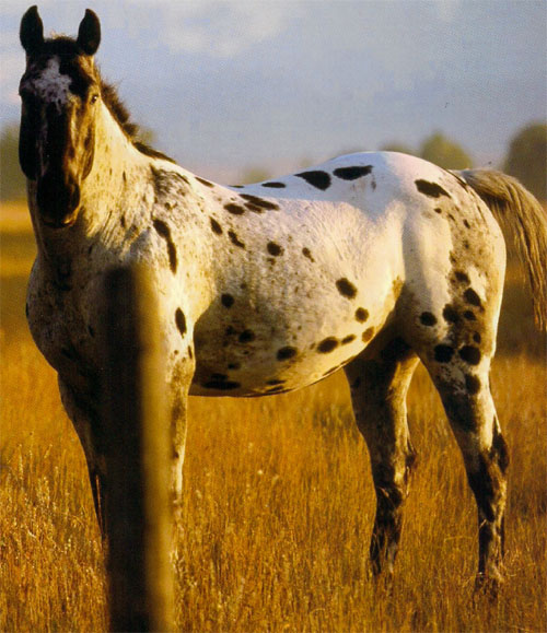 名字的來歷 阿帕盧薩馬是美國常見而著名的馬品種,據(jù)說是在北美的內茲佩爾塞人印第安領地由野馬培育而成的,這些野馬是西班牙探險者帶來的西班牙馬的后裔。因該馬產(chǎn)于愛達荷州及華盛頓州的帕盧斯河(Palouse River)附近,所以開始時叫帕盧斯馬,后因英語單詞“Palouse”前常加冠詞“A”,于是該馬就錯誤地被稱為“Apalousey”,1938年阿帕盧薩馬俱樂部成立并正式接受“Appaloosa”的英文名字,漢語翻譯為“阿帕盧薩馬’,亦譯稱“阿帕魯薩馬”。 阿帕盧薩馬簡史 內茲佩爾塞印第安人生活的地區(qū)位于現(xiàn)在美國的愛達荷州北部、俄勒岡州東北部和華盛頓州的東南部,他們曾培育出天賦優(yōu)良的阿帕盧薩馬,即著名的斑點馬。在18世紀后期的內茲佩爾塞戰(zhàn)爭期間,內茲佩爾塞人為了逃避美國軍隊的追擊,騎乘阿帕盧薩馬穿峽谷、過激流、走山路,經(jīng)過3個月精疲力竭的跋涉走了1500英里。阿帕盧薩馬因其優(yōu)異的性能贏得了很高的聲望,阿帕盧薩馬也因其強壯和速度被視作威脅而慘遭屠殺。1877年,美國軍隊打敗內茲佩爾塞人,該部落連同這些馬匹幾乎被滅絕。1938年,以一位種小麥的農(nóng)民克勞迪-湯普生為首,一些愿意獻身恢復阿帕盧薩馬光輝歷史的人成立了阿帕盧薩馬俱樂部。該俱樂部現(xiàn)位于愛達荷州莫斯考市,截至目前已有63萬匹阿帕盧薩馬在該俱樂部注冊。1950年,阿帕盧薩馬被美國種馬委員會正式承認為一個獨立的品種,1975年3月25日,阿帕盧薩馬被定為愛達荷州的州動物。 阿帕盧薩馬的特點 阿帕盧薩馬體高為14.2~15.2掌(注:1掌=10.16厘米),體重950-1250磅。成年的阿帕盧薩馬的體高不得低于14.0掌,但是往上沒有限制,17.0掌的阿帕盧薩馬時而可見。體重要與馬的大小和體格相符合。登記的阿帕盧薩馬不得帶有矮馬、挽馬、美國花馬和阿比諾馬(即美國白馬)的血液。 阿帕盧薩馬是速度快而優(yōu)美的動物,具有耐力和運動型的體格。如今,理想的阿帕盧薩馬被認為是非常平衡的“中庸”馬。阿帕盧薩馬的外表應該是富于肌肉、對稱而光滑的,鬐甲明顯而良好,背短,尻斜,臂長而斜,胸圍深,腹線長,肩長而斜,胸深,管骨短而扁平,系中等長而斜,四肢及蹄結實,運步平順而輕松。阿帕盧薩馬有各種不同類型以適應不同用途的需求。 阿帕盧薩馬和眾多其他馬種的不同點在于:毛色,斑點皮膚,白色的鞏膜和條形蹄。 阿帕盧薩馬的花色樣式 雖然阿帕盧薩馬不是根據(jù)毛色來判定的,但是毛色是該品種重要的可見部分。也就是說,人們想要的阿帕盧薩馬,從外表看上去應當像阿帕盧薩馬。阿帕盧薩馬基本的花色樣式有6種(亦可按5種的分法),并且這些花色樣式無限制地組合,因此沒有兩個阿帕盧薩馬具有絕對相同的標記。許多馬具有兩種花色樣式,比如沙色和斑點?,F(xiàn)把基本的花色樣式分述如下: (1)斑點毯樣式:被認為是最經(jīng)典的花色樣式。前軀呈暗色,腰部和臀部呈白色,像蓋在腰部和臀部上面的白毯子,在白色部分上面分布有圓形或雞蛋狀的斑點,很多斑點的周圍有沙色暈環(huán),斑點有大有小,可以從美國1角銀幣大小到直徑為4英寸(注:約10厘米)大小。這種斑點毛毯也是可大可小的。 (2)白色毯樣式:前身呈暗色。腰部和臀部像蓋上白色的毛毯,毛毯的大小和形狀同“斑點毯”,不同的是毯子上沒有暗色斑點。 (3)大理石樣式(也叫“沙色”):基本的顏色是紅色或者青沙色,有時也被描述成騮色沙、褐騮沙或者黑沙色。大理石樣式是阿帕盧薩馬最常見的毛色樣式之一。青沙色在色調上可以很淡,也可以很深,但是這里的“青沙”不同于“青毛”。阿帕盧薩馬沒有青毛,除非它在沙色毛的基礎上附加有“青毛基因”。大理石樣式常帶有“油漆標志”,即臉上有簇明顯的暗色毛。大理石樣式的阿帕盧薩馬在出生的時候幾乎都是單色的,當其成年的時候才成為可辨認的阿帕戶薩馬。 (4)豹斑樣式:基本的顏色是白色,從頭到腳均勻分布著形態(tài)大小相同的暗色斑。帶有豹斑樣式的阿帕盧薩馬生下來就帶斑點,而且終生不變。值得注意的是,有一些所謂的阿帕戶薩馬臂部有斑點,但是前軀呈淡色,這不是真正的豹斑樣式,多數(shù)屬于淡色沙毛和暗色斑的結合,在分類時應該劃到“斑點毯樣式”。簡單地說,真正的豹斑樣式的阿帕盧薩馬是以白色為基礎色,出生時就帶斑點。 (5)雪花斑樣式:有時稱為“反向豹斑”,其基礎毛色為暗色,全身分布白色斑點。雪花斑樣式的阿帕盧薩馬一般在出生時呈單色,然后逐漸演變成此種樣式。雪花豹斑也可能是一種過渡的樣式,即隨著年齡的增長,雪花斑就變成了大理石樣式,這是雪花斑樣式從單色毛到沙色(即大理石樣式)的毛色變化的中間過程。真正的雪花斑樣式是阿帕盧薩馬中最罕見的花色樣式,而且其斑點也會隨著四季變更而發(fā)生變化。 (6)霜斑樣式或臀部斑點樣式:基礎毛色為暗色,在腰部或臀部有霜狀斑或白斑。這種樣式隨著年齡變化而變化,或阿帕盧薩馬出生時就有這種顏色。霜斑是不可預測的,它可以是終生的,也可以像“雪花斑”一樣是過渡的形式,在這種情況下,霜斑是從單色毛到大理石色的一個中間過程。 阿帕盧薩馬必須具有的兩種東西 (1)白色鞏膜:有時也稱之為“人眼”,這種馬的眼睛像人的眼睛一樣,在虹膜的周圍是白色的。 (2)帶斑皮膚:這是該馬種最具標志性的身體特點。粉色或黑色的