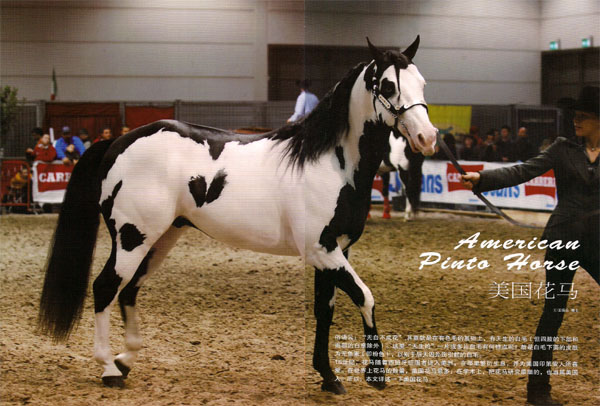 花馬在美國隸屬兩大協(xié)會(huì),分別是美國Pinto花馬協(xié)會(huì)(PtHA)和美國Paint花馬協(xié)會(huì)(APHA)。根據(jù)美國Paint花馬協(xié)會(huì)的統(tǒng)計(jì):自1962年以來,截止到2007年,該協(xié)會(huì)共登記92.84萬匹花馬。據(jù)2007年的年度統(tǒng)計(jì)資料,全世界該年度登記的Paint花馬為35032匹,其中美國和加拿大為30639匹(加拿大2418匹),其他國家為4393匹。在美國以德克薩斯州花馬最多,數(shù)目為4138匹,加利福尼亞居第二位,數(shù)目為1945匹。除了美國和加拿大之外,德國、法國、意大利的花馬也比較多,登記的數(shù)目分別是554、349、322匹。 關(guān)于花馬的稱謂 作為術(shù)語來講,花馬的稱謂較混亂,看上去也令人莫名其妙。今分述如下: 黑白花馬(Piebald):這一術(shù)語在說英國英語的國家較普遍。簡言之就是黑馬身上帶有白花。 彩色花馬(Skewbald):這一術(shù)語也是在說英國英語的國家較普遍。馬身體上的顏色除了白花以外,其他顏色是有色的,但不包括黑色。比如栗毛馬身上有白花叫栗白花,這毛色最為常見。其次,騮毛馬身上有白花叫騮白花。在彩色花馬中,較少遇見的為銀鬃白花、兔褐白花、沙白花等花色。 花馬(Colored):這一術(shù)語亦用于說英國英語的國家,而在說美國英語的國家常將花馬叫“品托”(Pinto),“Pinto”一詞來自西班牙語“Pintado”,意思是“繪畫的”,而在西部牛仔的土話中就變成了“花的”。在美國還有個(gè)詞叫“Paint horse”,也是指“花馬”,二者的區(qū)別在后文詳述??偠灾R就是指上述所說的“黑白花馬”和“彩色花馬”。 三彩花馬(Tricolored):乍看起來,頗像唐三彩馬。這里指毛色中有三種顏色。如騮色馬本身就是紅、黑兩色,如果體軀有白花則就成了三種顏色,叫“騮白花”,這術(shù)語用于說英國英語的國家,同時(shí)這一詞完全可以并入“彩色花馬”中。 關(guān)于花的樣式 淘比亞諾(Tobiano):這是“花馬”(美語稱“Pinto”)中最普遍的類型。白花略呈圓形,整個(gè)四條腿為白色,白毛向上穿過鬐甲和尾根之間的背部,一般大都為垂直的樣式,全身白色多于暗色,當(dāng)然最理想的分配比例是半對半。馬的頭部一般是暗色的,如有白章則和正常單色馬的一樣。淘比亞諾樣式由顯性基因控制,其遺傳規(guī)律是“如果小駒為淘比亞諾樣式,則至少父母之一為淘比亞諾樣式”。 奧維羅(Overo):白斑呈輪廓分明的,不規(guī)則狀,常水平走向,全身暗色毛大于白色,臉常為白色,有時(shí)為藍(lán)眼睛(即玉石眼)。白毛很少穿過馬背.四肢多為正常的暗色。奧維羅樣式由隱形基因控制,即兩個(gè)單一毛色的父母,可能生成一匹奧維羅樣式的后代,人們把這種現(xiàn)象叫“意外事件”。 薩比諾(Sabino):其特點(diǎn)是有范圍不大的白斑,諸如腿白過高(前肢過膝蓋、后肢過飛節(jié)),腹部有白斑,臉部白斑向后延伸過眼,或有單獨(dú)的一塊沙毛,或在白斑的邊緣呈現(xiàn)沙毛狀。在某些登記會(huì)上,薩比諾樣式被登記為奧維羅樣式,實(shí)際上兩者并無相關(guān),相應(yīng)控制基因是不同的。 淘維羅(Tovero):白斑樣式為淘比亞諾和奧維羅樣式的混合體,即具有二者的特征。比如耳朵周圍為暗色,這種暗色可能擴(kuò)展到前額和眼睛,單眼或雙眼為藍(lán)色(即玉石眼)。前胸部有暗斑,可能向上延伸到頸部。脅部有暗斑,這種暗斑可能向前延伸到胸廓,向上延伸至腰。尾礎(chǔ)也有暗斑。 根據(jù)美國Paint花馬協(xié)會(huì)按照花的樣式統(tǒng)計(jì)的結(jié)果是淘比亞諾(Tobiano)占35.91%,奧維羅(Overo)占23.62%,淘維羅(Tovero)占5.43%,單色(非花馬)占35.04%。 Paint花馬和Pinto花馬之間的區(qū)別 兩者的共同特點(diǎn)都是花馬。用一句簡單的話說“Paint和Pinto之間的主要區(qū)別在于品種上”。 美國Paint花馬:具有花馬的毛色,同時(shí)具有可追溯到夸特馬(Ouarter horse)和純血馬(Thoroughbred)的可靠系譜的馬,才叫美國Paint花馬,并可登記在美國Paint花馬協(xié)會(huì)。這就是說美國Paint花馬必須是已登記的美國夸特馬、美國Paint花馬或者純血馬血統(tǒng)的馬。 美國Pinto花馬具有花馬的毛色,但對品種沒有要求,即可以是許多馬的品種,也可以是品種之間的雜交馬。不過,美國Pinto花馬協(xié)會(huì)不登記花色的挽馬和騾子,因?yàn)樗鼈冇闪硗獾牡怯浗M織專門登記。 此外,美國Paint花馬主要看血系,除了登記花馬之外,還登記沒有花的馬,如前文所述其比例占35.04%,這也是美國Paint花馬協(xié)會(huì)與美國Pinto馬協(xié)會(huì)之間的個(gè)重要區(qū)別。 綜上所述,美國Paint花馬和美國pinto花馬是有重復(fù)的,可以雙重登記。美國Paint花馬大多數(shù)符合美國Pinto花馬的登記條件,但不是所有的Pinto花馬都符合Paint花馬的登記條件的。 品種登記和白章 如果雙親都是純色(單毛色,非花馬,但是多數(shù)馬的臉上和四肢白章面積較大)而生出的花馬幼駒,根據(jù)美國Paint花馬協(xié)會(huì)的統(tǒng)計(jì),這種“意外事件”只占0.41%。在過去,對這種情況一般是不予登記的,原因是認(rèn)為其是雜種。對于這一限制,無論是美國的Paint花馬協(xié)會(huì),還是美國Pinto花馬協(xié)會(huì)都是一樣。類似的情況,也發(fā)生在阿拉伯馬協(xié)會(huì)和美國夸特馬協(xié)會(huì)。然而,現(xiàn)在通過DNA檢測可以揭示控制花馬毛色的基因,比如阿拉伯馬的薩比諾樣式、夸特馬的薩比諾、奧