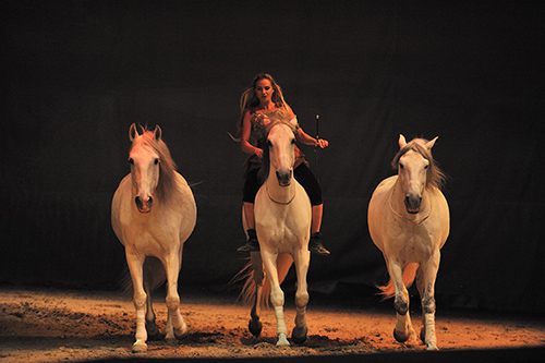 在白色的移動(dòng)城堡里,人與馬演繹著一幕幕從遠(yuǎn)古洞穴到草原、沙漠、叢林,從古老的東方到夢(mèng)幻史詩(shī)般的歐洲川澤原野的世代情緣。《Cavalia 舞馬》就是這樣為身在高樓林立的都市,渾噩間常不知生亦何歡的人們送去了一點(diǎn)慰藉,引你去探尋生命本真的道路。 生活不止眼前的茍且,還有詩(shī)和遠(yuǎn)方?,F(xiàn)實(shí)也許會(huì)困住我們的腳步,不過(guò)夢(mèng)的空間是無(wú)限的。就在北京的朝陽(yáng)公園,圓核經(jīng)典就為我們?cè)炝艘粓?chǎng)人與馬的夢(mèng)境。 這一次的造夢(mèng)來(lái)源于一年多前圓核經(jīng)典董事會(huì)主席陳澤盛先生在新加坡偶然觀(guān)看的一場(chǎng)《Cavalia·舞馬》的演出。他立即被其中所展現(xiàn)出的人與自然、人與動(dòng)物間的愛(ài)和美所感動(dòng),所震撼。這種透過(guò)人與馬的情感交流而進(jìn)行的藝術(shù)化互動(dòng),就像一縷光照進(jìn)了精神的家園,帶給人以希望和振奮。“我是個(gè)占有欲很強(qiáng)的人,那一刻有個(gè)閃電般的沖動(dòng)從我腦中劃過(guò),形成了一道光,這道光就是我和《Cavalia·舞馬》談判的動(dòng)力,我覺(jué)得自己有義務(wù)引進(jìn)這樣精神價(jià)值高、主題健康的藝術(shù)作品?!苯?jīng)過(guò)了漫長(zhǎng)而艱難的談判,Cavalia的創(chuàng)始人Normand終于同意將版權(quán)賣(mài)給圓核經(jīng)典,于是我們今天便能夠在北京走進(jìn)這個(gè)夢(mèng)境,慰藉那對(duì)于詩(shī)和遠(yuǎn)方的惦念。 在白色的移動(dòng)城堡里,人與馬演繹著一幕幕從遠(yuǎn)古洞穴到草原、沙漠、叢林,從古老的東方到夢(mèng)幻史詩(shī)般的歐洲川澤原野的世代情緣。 夜深人靜之時(shí),清揚(yáng)的音樂(lè)聲里,小女孩懷中的木馬悄然入夢(mèng),幻化成兩匹白馬,披著一身光明?!鞍?!多么美的生靈!讓我擁有你吧,我從不淘氣?!比伺c馬就這么在夢(mèng)中相遇了。馬是自由的精靈,小女孩是天使的化身,那份親昵會(huì)讓上帝都妒忌。 在久遠(yuǎn)的歷史中,馬與人真正的相遇早已記錄在了遠(yuǎn)古的洞穴里:漠漠黃沙,一群野馬,覺(jué)識(shí)了的人類(lèi),正釋放征服者的欲望。野馬怎會(huì)輕易屈從?但只要你能,神祗的預(yù)言里,早已寫(xiě)下了人與馬的命運(yùn)歸屬。不知經(jīng)歷了多少春秋,又跨越了幾方大陸,在非洲的密野叢林之中,伴著咚咚鼓響,原始的人類(lèi)無(wú)畏、狂放。大地之上,人與馬是野蠻的兄弟兩個(gè),彼此助長(zhǎng)生命的能量。在文明的啟蒙階段,是神話(huà)豐滿(mǎn)了人類(lèi)生存的意念:渺遠(yuǎn)星空,傳來(lái)天籟,神女仿佛隱約在繁星之間。兩位仙子,橙衫、紫衣,白馬騎士是她們的愛(ài)侶??罩械孽滠],馬上的依戀,愛(ài)情那般美妙,時(shí)光也會(huì)不忍去打擾吧。 春夏秋冬,季節(jié)輪回,不變的是人與馬的一路相隨:一群白色的阿拉伯馬,仿若林中快樂(lè)的精靈,森林王子的一個(gè)眼神,它們就會(huì)乖乖排好隊(duì)形;紛紛白雪落滿(mǎn)衣,仙子們?cè)谘┲衅鹞栎p盈,播散春日的訊息;小溪中落下了馬兒的倩影,騎著駿馬的男男女女,怎能藏得住那顆悸動(dòng)的心;又或許是到了精靈王國(guó)的秘境,山野湖沼間,都釋放著自由的氣息,人與馬都仿佛籠罩了光暈,又一起加入到水澤中的嬉戲。 還有古羅馬時(shí)代的英雄,立馬拉韁,連番越障,張揚(yáng)著僨張的豪氣;吉普賽的野孩子在大笨馬的背上盡情撒潑;那個(gè)西部牛仔,你一看到他就會(huì)忍不住發(fā)笑;還有敦煌仙女的飛升,漢唐五花馬的繁盛,牛仔的狂野……你會(huì)被感動(dòng),會(huì)迷戀上有馬為伴的情景。 《Cavalia 舞馬》就是這樣為身在高樓林立的都市,渾噩間常不知生亦何歡的人們送去了一點(diǎn)慰藉,引你去探尋生命本真的道路。 曾記得電視劇《漢武大帝》中有一個(gè)場(chǎng)景:武帝帶著獵隊(duì)誤將上林苑里的馬當(dāng)成野馬射殺了,衛(wèi)青趕過(guò)來(lái)跪倒在地,顫抖著雙手為馬包扎著傷口,憤恨地一遍遍大叫“漢朝人沒(méi)希望了,漢朝人不愛(ài)自己的馬,不愛(ài)自己的女人,漢朝人沒(méi)希望了,沒(méi)希望了!”這身嘶力竭的叫罵,不僅喚醒了武帝,也喚醒了多少觀(guān)眾。隱約間歷史總在一遍遍重演??萍嫉陌l(fā)展讓現(xiàn)今的人們有太多的途徑可以輕而易舉地接觸到各樣的言論、認(rèn)知、文化、思想,而人們卻越發(fā)找尋不到足以信奉的人生教條。 有時(shí)候我們想,勤勞、善良、樸實(shí)、真誠(chéng),這些美好的德行也都是讓人尊敬的,可是為何偏偏少了一種讓人敬畏的大氣?恭敬自持,謙謙君子之風(fēng)都是千百年來(lái)的傳承,不過(guò)人的骨血里終究還殘留著原始的野性。人性不足論,因?yàn)閷?shí)在有太多的悲哀和爭(zhēng)議。禮教的規(guī)訓(xùn)無(wú)疑能夠讓社會(huì)和諧,長(zhǎng)幼有序,不過(guò)內(nèi)心里或多或少會(huì)缺失了這種對(duì)于豪邁的釋放的灑脫。 在草原曠野上馳騁,與馬為伴的狂野和自由所匯聚起來(lái)的騎士精神,應(yīng)該是一種源于對(duì)真正的瀟灑和尊嚴(yán)的推崇?!独菆D騰》中極力宣揚(yáng)著人類(lèi)的輝煌時(shí)代都曾遵從著狼性圖騰,可惜了農(nóng)耕文明的溫床,將那野性逐漸消磨了。不過(guò)發(fā)展至今,私以為人類(lèi)當(dāng)更應(yīng)該遵從馬性,一舉一動(dòng),一俯首,一