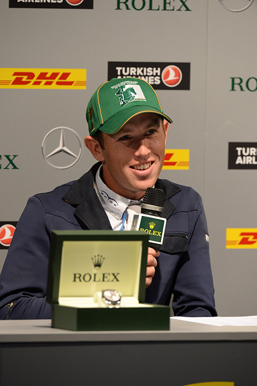 亞琛世界馬術節(jié)的重頭戲,全世界馬迷們關注的焦點——總獎金高達一百萬歐元的勞力士大獎賽在當?shù)貢r間5月31日下午13點15分正式開始,三輪過后,目前世界排名第一的英國選手布萊士(Scott Brash)和他的愛馬Hello Sanctos以三輪零失誤,決賽48.04秒的絕對優(yōu)勢摘得桂冠,抱走33萬歐元獎金的同時,也讓他自己離勞力士大滿貫的頭銜又近了一步。 5月31 日下午,亞琛CHIO 體育場近四萬名觀眾親眼見證了這場激動人心的比賽。比賽分為三輪,第一輪共有 40 位參賽者,他們都是全世界頂級的障礙賽選手。第一輪結束后,排名前 18 位的選手進行第二輪比賽。兩輪比賽需要在規(guī)定時間(80秒)內(nèi)完成,超出規(guī)定時間和障礙物掉落都會造成扣分。只有前兩輪完全零失誤的選手才有機會進行第三輪的決賽(jump off),贏得勞力士大獎賽的冠軍獎杯。 為了讓《馬術》讀者更好地了解比賽,記者在賽前采訪了線路設計師羅騰拜格(Frank Rothenberger)并且跟隨他在場內(nèi)逐一查看了所有的障礙。這些障礙包含了雙重障礙,三重障礙,平行障礙,木柵欄障,水障等。其中最后一個拱形障礙的最高點高度竟然達到了1.65米。勞力士大獎賽之所以被認為是世界最具挑戰(zhàn)性的項目之一不僅僅是因為這里有世界最出色的障礙設計師,還與亞琛自身的環(huán)境有著很大的關系。亞琛的比賽場地并非是水平的,地形的高低起伏就意味著選手在短短幾十秒的比賽中還要格外考慮到上坡阻力和下坡控速的問題,并迅速做出反應,這無疑對選手的綜合能力是一項極大的考驗。 兩輪過后,只有七名選手取得參加決賽的資格。正像線路設計師在決賽前說的:“這個環(huán)節(jié)誰要不拼盡全力,還不如留在家里。“七位選手在這一環(huán)節(jié)中都上演了屬于自己的“速度與激情“。 布萊士在決賽中最后一個出場,他并沒有像觀眾期待的那樣選擇一條最短的線路完成比賽,這一度讓全場觀眾為之嘆息,但是憑借他卓越的控馬能力和馬匹的速度,他依然成為場上用時最短的選手,超越了德國選手丹尼爾·杜瑟(Daniel Deusser)。計時器停止的那一刻,全場觀眾起立,尖叫,吶喊,一同為他慶祝勝利?!斑@是一場瘋狂的比賽,Hello Sanctos 表現(xiàn)得非常好。去年它不喜歡這里,但是今年它好像改變主意了?!?布萊士在賽后的新聞發(fā)布會上說道。 對于亞軍,德國選手丹尼爾·杜瑟來說,這是一場讓他的心情經(jīng)歷了過山車一般的比賽。決賽首發(fā)出場,并且一直保持著優(yōu)勢,冠軍獎杯就在伸手可及的地方,最后卻還是落了空?!拔覍ψ约航裉斓谋憩F(xiàn)很滿意,第二名是非常棒的成績??紤]到布萊士過去一年的表現(xiàn),我?guī)缀蹩梢源_定他一定會戰(zhàn)勝我。” 取得第三名的是法國選手德拉斯特(Simon Delestre)和他的愛馬 Randes Havettes。德國名將比爾鮑母(Ludger Beerbaum)排名第四。 文/呂妍、李艷陽,圖/Rolex |