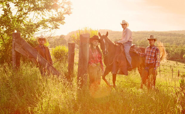 西部馬術(shù)比賽與典型美國(guó)西部風(fēng)格有著千絲萬(wàn)縷的聯(lián)系,基于這點(diǎn)考慮,攝影師Liz Gregg試圖把這四位騎手塑造成既活潑但又不失傳統(tǒng)的“酷牛仔”味道(就像一部經(jīng)典美國(guó)西部片Butch Cassidy and the Sundance Kid里表現(xiàn)的一樣)的形象。在黃昏的余暉下,以托斯卡納山為背景,我們仿佛看到四位冠軍正在向他們所熱愛(ài)的運(yùn)動(dòng)許下莊嚴(yán)的承諾,這也打破了人們對(duì)年輕人輕率、盲目的常規(guī)認(rèn)識(shí)。
