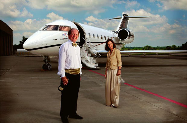 在這幅作品中,Alltech公司總裁Pearse Lyons和夫人Deirdre正在邀請(qǐng)我們?nèi)⒓右粓?chǎng)盛宴。被冠名Alltech名字的私人飛機(jī)停在他們身后,似乎告訴大家一段旅途剛剛結(jié)束而一段新的旅程又即將起航。夫婦二人似乎在許諾大家將會(huì)奔赴一場(chǎng)與眾不同的盛宴,這讓人倍感興奮。穿著優(yōu)雅的夫妻微笑著,因?yàn)?010年這家公司成立30周年了,它是由Lyons先生憑借科學(xué)技術(shù)知識(shí)從無(wú)到有一手創(chuàng)建的。