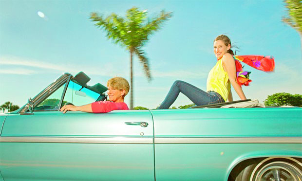 Jessica Springsteen和Beezie Madden坐在1964年出產(chǎn)的別克云雀轎車中,她們那種漫不經(jīng)心的感覺(jué)讓人不禁聯(lián)想起Thelma and Louise(一部美國(guó)電影),通常怕上鏡的Beezie此時(shí)看起來(lái)也很放松。在惠靈頓舉辦的FTI冬季馬術(shù)節(jié)剛過(guò),她們就來(lái)到弗羅里達(dá)州進(jìn)行“激勵(lì)”的拍攝。傍晚的余暉點(diǎn)燃了攝影師Liz Gregg的拍攝靈感,她想為兩位騎手設(shè)計(jì)出一種耳目一新、富有感召力的造型。為了拍攝飛馳轎車的上半部分,Liz半躺半蹲地坐在同樣飛快移動(dòng)的高爾夫球車?yán)?,盡管Liz姿勢(shì)糾結(jié),但是所拍的這張照片卻表現(xiàn)出了積極樂(lè)觀、獨(dú)立向上女性的形象——清澈的藍(lán)天下,兩位騎手坐在車中共同分享著陽(yáng)光沐浴的一刻。