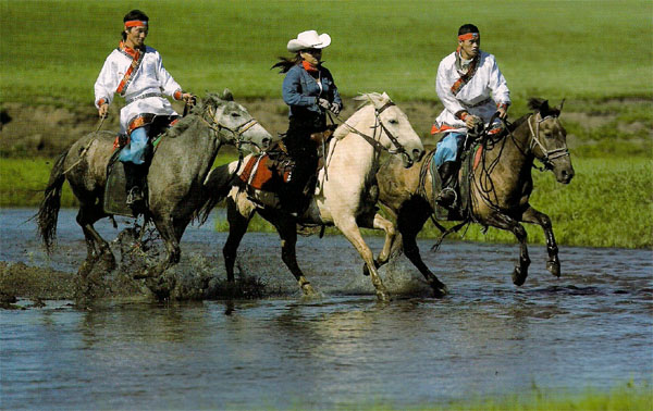 眾所周知,在世界的三大馬文化中,草原游牧文化是最古老的。除了歐洲、非洲、美洲草原,身居亞洲腹地的蒙古草原游牧文化的歷史是最悠久的,歐洲貴族馬文化次之。美國西部牛仔文化是最年輕的,它是在開發(fā)美國西部養(yǎng)牛趕牛的過程中而形成的文化。美國西部牛仔文化和當(dāng)?shù)赝林?-印地安人也有著密不可分的關(guān)系,而印地安人很可能就是蒙古人的后代。據(jù)說在一萬年前左右,蒙古人從蒙古草原一直向北穿過西伯利亞,跨過白令海峽,進(jìn)入美洲大陸,成為了這片土地的主人--印地安人。由于美國西部牛仔文化發(fā)源于印地安人所在的區(qū)域,所以必然受到印地安文化的影響。從這個(gè)意義上說,美國西部牛仔文化又回到了蒙古草原的故鄉(xiāng)。這也是兩種馬文化的一次大碰撞。比賽是要分出勝負(fù)的,兩種馬文化各有其特長(zhǎng),所以競(jìng)賽規(guī)則就顯得非常重要。因?yàn)槿魏伪荣惗家胶侠恚茱@然,草原耐力賽、上馬絆、套馬是元和牧人隊(duì)的強(qiáng)項(xiàng)而繞桶賽、繞蘇魯錠是都市牛仔隊(duì)的強(qiáng)項(xiàng)。 第一站,天堂草原的成吉思汗瞭望山 從北京沿八達(dá)嶺高速公路一直向北過張家口、張北、太仆寺旗到錫林浩特市,再向東140公里就到了西烏珠穆沁旗。 相傳在800多年前,成吉思汗曾路過此地,發(fā)現(xiàn)自己兩匹心愛的馬丟失了,便登上了山頂向遠(yuǎn)處張望,發(fā)現(xiàn)它們正在安然地吃草,于是后人就把這座山叫作成吉思汗瞭望山。 它位于天堂草原的一端,也就是著名的西烏旗全國草原耐力賽的起點(diǎn)。 2005年7月,西烏旗為了恢復(fù)馬背文化舉行了800匹馬的大型馬文化節(jié),在第一屆全國草原耐力賽上,就以207匹馬打破了1939年在英國利物浦安翠賽馬場(chǎng)創(chuàng)造的一場(chǎng)比賽66匹馬的吉尼斯世界紀(jì)錄。我們7月16日到達(dá)西烏旗,第三屆西烏珠穆沁旗全國草原耐力賽于7月17日早上7點(diǎn)開始,而我們將在7月18日參加對(duì)抗賽。第一場(chǎng)比賽是在天堂草原進(jìn)行的耐力賽,我們只跑1/10的路程,所以觀看比賽就成了一次難得的實(shí)戰(zhàn)演習(xí)…… 7月17日,都市牛仔隊(duì)一行,早早就來到了比賽現(xiàn)場(chǎng)。七月的草原上,晨霧才剛剛散去,留了一層薄薄的露珠,在花頭草尖。披件外套也還是會(huì)感覺到那風(fēng)里夾著的濕漉漉的清涼。參賽的馬匹已經(jīng)被主人們牽著在場(chǎng)內(nèi)就緒,只是選手都還遲遲沒有露面。 陰沉沉的天空開始滴雨,越下越大。透過雨簾看奔跑而來的騎手,感覺心像被突然撞了一下,那真是一群孩子,十來歲的樣子,卻如風(fēng)一樣從雨里跑來,眼睛里執(zhí)著地只有馬。 由于瞬間的強(qiáng)降雨,草原開始積水,小孩子們就光著腳站在雨水里,等待著馬匹的檢驗(yàn)。沒有傘,沒有雨衣,一個(gè)個(gè)孱弱的身軀在風(fēng)雨里抖得像片葉子,而從他們的臉上卻看不到絲毫的畏懼與慌張。 你,站在傘下,遠(yuǎn)望著感受著這場(chǎng)還沒開始的比賽帶來的持續(xù)的震撼。 槍響,上馬,出發(fā),其實(shí)真正能看到的動(dòng)態(tài)鏡頭也就不過那兩分鐘,但這之間所離析出的分鏡頭卻讓你恒久難忘。大人們的渴求、孩子的勇猛,對(duì)前路的未知,都隨著震耳的馬蹄聲奔跑進(jìn)迷蒙的水霧里。而此時(shí),人群開始向后轉(zhuǎn),跑向終點(diǎn)的方向。 等待的時(shí)間永遠(yuǎn)都是漫長(zhǎng)的。當(dāng)?shù)谝黄ヱR飛奔而來時(shí),你能聽到身邊安靜的人群開始躁動(dòng),接著尖叫之后便是無休止的沸騰。這個(gè)時(shí)候你是無法控制情緒的,淚水被孩子們不斷揚(yáng)起的馬鞭催了下來,那被收進(jìn)鏡頭的是怎樣的畫面?。∫粡垙堉蓺獾哪樕鲜菣M飛的泥水和堅(jiān)毅的眼神,即使到了最后一刻也還是倔強(qiáng)地加著鞭子嘴里吆喝著,相互趕超,那執(zhí)著是任誰都難以抗拒的感動(dòng)。 才了解為什么忠勇與堅(jiān)毅是草原人民的定語,原來那是一種幼年時(shí)就埋下的情結(jié)。 比賽結(jié)果:紅山軍馬場(chǎng)的紅山一號(hào)和紅山二號(hào)兩匹駿馬獲得冠、亞軍。30.5公里用時(shí)46分40秒。當(dāng)人們都為東道主西烏旗又沒進(jìn)入前三名而惋惜時(shí),旗長(zhǎng)巴特爾一句話引起了人們的深思:我們要的是公平公正的品牌賽事,讓更多的人馬來參加比賽,了解西烏旗。我們雖然沒拿前三名,但我們是大贏家。 第二站,首戰(zhàn)3公里耐力賽 7月18日 萬事開頭難。第一場(chǎng)對(duì)陣,人、馬還不熟悉,安全是最大問題。朱和源隊(duì)長(zhǎng)特別叮囑4位女騎手要保持騎乘的重心。 成吉思汗嘹望山有片難得的美麗草場(chǎng),在這里我們邂逅了牧人隊(duì)的選手。相比起牛仔隊(duì)里的四哥,蘇老師這樣的老牛仔而言,眼前的對(duì)手清一色是孩子輩的。他們大多在20歲左右,甚至更小,但提到騎齡,最少的也在10年以上。 用淳善的巴特爾的話說:“用我們分給你們的馬比賽,那就根本不存在什么競(jìng)爭(zhēng)。”分給我們的馬的確從能力上懸殊較大,但大家本就是以友誼第一的心態(tài)走進(jìn)草原的,所以也就備鞍上馬,未見紛爭(zhēng)。 想來這荒莽的草原是第一次出現(xiàn)如此這般斑斕的景象吧。兩種文化在馬背上和諧地碰撞,語言不通的對(duì)手在馬背上達(dá)成了最原始的互通。在這場(chǎng