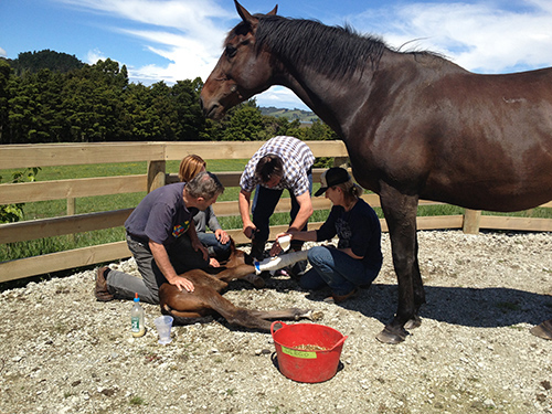 有一次馬匹的放風(fēng)活動一直令我印象深刻,那是母馬帶著剛出生 2 周的小馬駒一起外出享受燦爛的陽光,我牽著它們不過步行了短短 2 分鐘,隔壁場地里活動的成年馬匹們就敏感地將目光投向我們。由于兩個場地中間沒有被徹底隔離,成年馬匹們迅速跑過 100 多米來到了我們面前,顯然它們的目標(biāo)是格斗中處于弱勢的小馬駒,只見母馬這時奮力掙脫開我手里的牽馬繩,并近乎瘋狂地回應(yīng)它們的惡意攻擊。這次經(jīng)歷告訴我們這樣一個道理:初生馬駒在馬群中的地位很低,出于保護(hù)它的目的,我們應(yīng)該將它完全與其他成年馬匹隔離。那么借著這個故事,我想和大家強(qiáng)調(diào)一下護(hù)理初生馬駒的重要性及應(yīng)注意的幾個方面。 前段時間,我的鄰居來向我和丈夫求助,她家剛誕生于這個世界的馬駒有前腿彎曲(蜷縮)的狀況。馬駒站不起來,不能吃母馬的奶。下面的文章我會告訴你為何這屬于“緊急狀況”;為何對馬駒來說,能自己盡快站起來,吃到母馬的“初乳”是如此重要的事情。 幾周前,還是這位鄰居,她電話咨詢我:現(xiàn)在是否能帶著她的母馬和小馬駒與其他成年馬匹們一起遛彎?并告訴我,那匹小(公)馬駒現(xiàn)在很強(qiáng)壯,能很好地吃奶,與媽媽的母子聯(lián)系也非常緊密。我從中國讀者那里也接收到同樣的提問,這是多么巧合的一件事情!如此可見,無論在世界的哪個地方,涉及到馬匹時,問題都是一樣的。 我的中國讀者沒有被她牽著的母馬踢中頭真是非常幸運(yùn)。世界上沒有比母馬和它的馬駒更緊密的聯(lián)系了。母馬會不顧一切危險去保護(hù)馬駒,甚至愿意為馬駒而死去。作為一個“愛馬之人”,了解馬的行為,并且確保不會將你自身、母馬和馬駒置于危險之中是你的職責(zé)。會被母馬視為“危險”的情況有很多。把母馬和它出生兩周的馬駒帶到一群母馬之中,恐怕是你能做的最危險的事情之一??梢?100%的確定,這會導(dǎo)致災(zāi)難。相對來說,更好的解決方案是:將一匹在馬群中地位低的、安靜的、友好的母馬及其馬駒帶入那匹母馬和剛出生 2 周馬駒所在的放牧場。一定不要將那匹母馬帶離它自己的領(lǐng)地,不要將它放置在不熟悉的、“危險”的放牧場。幾天之后,大家彼此熟悉,能快樂、安靜地相處后,再“引薦”另一匹母馬及其馬駒進(jìn)入。每匹母馬和自己的馬駒應(yīng)建立緊密的聯(lián)系,馬駒都應(yīng)該強(qiáng)壯而健康。但要意識到,風(fēng)險依然存在,引入馬匹后,就離開放牧場,讓母馬自己行動,讓母馬們和它們的馬駒自己交流、熟悉、適應(yīng)。隨著馬駒逐漸成長,變得更強(qiáng)壯,有能力從亂踢的母馬身邊及時跑開,母馬變得更加放松,那么“引薦”就變得更容易了。 好的圍欄在 “引薦”的過程中扮演著不可或缺的角色。同時,應(yīng)該要由一個熟悉母馬和馬駒、經(jīng)驗(yàn)豐富的人監(jiān)督指導(dǎo)。通常一個健康、新生的馬駒能充分適應(yīng)環(huán)境并生存下來,但減輕壓力和控制疾病的措施依然必不可少,如無微不至的接生及生產(chǎn)的準(zhǔn)備、照料等工作以及特別的預(yù)防措施。大部分健康的母馬在產(chǎn)駒時幾乎不會遇到困難,然而,體型過胖或年紀(jì)過老的母馬則更有可能碰到身體狀況不適合產(chǎn)駒或肌肉張力不足而沒有能力快速產(chǎn)駒的情況。很顯然,這類母馬需要得到更多的關(guān)注。馬駒在出生過程中如果遇到困難(難產(chǎn)),或者生產(chǎn)期間耗時過長,這些都會直接影響到馬駒的身體狀況和后期發(fā)展。 生產(chǎn)期間檢查馬駒和母馬 母馬產(chǎn)駒時,你應(yīng)該在場,馬駒一落地就應(yīng)該確保胎衣沒有覆蓋住馬駒的鼻子。同時也要避免過多的干預(yù)行為——讓母馬來行動,并讓其放松。因?yàn)轳R駒身體里超過三分之一的血液都是在落地后的幾分鐘里從胎盤傳輸?shù)缴眢w的(若母馬受驚跳起導(dǎo)致臍帶斷開,血液還沒完全進(jìn)入馬駒身體,那必然會影響馬駒的體質(zhì))。讓臍帶保持連接,通常情況下,臍帶會在馬駒移動或母馬站起來時自動斷開。 生產(chǎn)期間的注意事項(xiàng): 1. 檢查母馬是否存在產(chǎn)后撕裂、擦傷或受傷的情況——如果有必要,咨詢專業(yè)的獸醫(yī)。 2. 檢查臍帶是否已經(jīng)斷開,馬駒是否有活力。 3. 檢查胎衣。1-2 小時內(nèi),胎衣應(yīng)該全部出來。將胎衣展開,檢查是否完整。如果不確定母馬體內(nèi)是否留有部分胎衣,應(yīng)咨詢獸醫(yī)。 如果胎衣留在了母馬體內(nèi)超過 4 小時,應(yīng)咨詢獸醫(yī)?;蛟S需要用一種后葉催產(chǎn)素激發(fā)體內(nèi)的胎衣脫離子宮。如果在 6-8 小時內(nèi)胎衣依然停留在體內(nèi),獸醫(yī)必須要趕到現(xiàn)場來將之移出。胎衣在子宮內(nèi)停留超過 8 小時,就很難移出,可能會因?yàn)橐恍┒舅囟鴮?dǎo)致感染,并伴隨發(fā)生蹄葉炎的風(fēng)險,這是導(dǎo)致母馬產(chǎn)后死亡的最常見原因。 確保馬駒能站起來,檢查是否存在反常情況。新生馬駒的體重對于馬駒的存活率來說至關(guān)重要,同時對未來身體的成長和發(fā)育也一樣重要。體重輕于 35kg 的馬駒能成長的幾率幾乎沒有,或者說很難達(dá)成快速并健康成長的愿望。 初乳的重要性 對新生馬駒來說,盡快吃到初乳是非常重要的,初乳能提供能量、蛋白質(zhì)、水以及重要的能