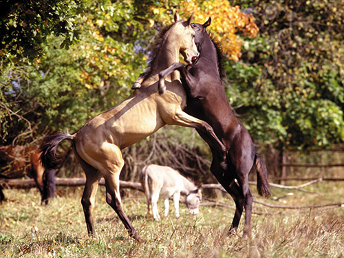 馬匹常年被關(guān)在馬廄中,這樣的生活不但無(wú)趣,對(duì)馬的身心也非常不利。 很多生活在馬廄中的馬每周只能得到幾小時(shí)的“放風(fēng)”時(shí)間,雖然它們中的大部分能適應(yīng)這樣的生活,但這并不意味著這種方式能被稱(chēng)之為“自然”。馬是適應(yīng)游牧環(huán)境的動(dòng)物,在自然環(huán)境中,它們每天會(huì)散步8-26km。 這就是為什么我們要遛馬,其益處不言而喻。 有益于肌肉骨骼系統(tǒng) 研究顯示,能自由自在運(yùn)動(dòng)的年輕馬擁有更強(qiáng)壯的骨骼。對(duì)年老馬來(lái)說(shuō),持續(xù)運(yùn)動(dòng)、遛馬能幫助它們強(qiáng)健骨骼、減少浮腫和骨質(zhì)疏松的狀況,而浮腫正是長(zhǎng)期生活在馬廄中的馬最常遇到的問(wèn)題。 增加馬群的社交機(jī)會(huì)和減輕壓力 遛馬有利于緩解馬匹在馬房中的緊張和壓力 馬是高度社會(huì)化的動(dòng)物,很多馬在不能看到同伴或不能和同伴在一起時(shí),它們將難以放松。還有的馬不愿意在馬廄中躺下,這或許是因?yàn)轳R廄中它們看不到周?chē)沫h(huán)節(jié),擔(dān)心不能及時(shí)發(fā)現(xiàn)可能的威脅,也可能是它們感覺(jué)馬廄中空間太狹小。 食物鏈中,馬是被獵食的動(dòng)物,它們本能的逃跑反應(yīng)非常強(qiáng)。如果受到驚嚇,那么它們做出的第一個(gè)反應(yīng)就是逃跑,然而在馬廄中,卻無(wú)處可逃。在這種它們天然的防御機(jī)制被阻斷的情況下,馬會(huì)產(chǎn)生一定程度的精神壓力。因此,當(dāng)逃跑反應(yīng)被激發(fā)時(shí),它們可能做出具有攻擊性的行為。 遛馬時(shí),年輕的馬能跟著馬群年紀(jì)大的馬學(xué)習(xí)好的行為習(xí)慣、馬群次序。“馬前輩”會(huì)教育它“尊重上級(jí)”,這讓馬匹訓(xùn)練師的工作更容易,也能幫助馬適應(yīng)人馬互動(dòng)的環(huán)境。 有助消化系統(tǒng)的健康 馬的胃不斷分泌胃酸,大量的堿性唾液能中和胃酸。然而,唾液只有在馬匹咀嚼和吞咽時(shí)才產(chǎn)生。自然環(huán)境中,馬匹每天邊散步邊吃草的時(shí)間加起來(lái)有18個(gè)小時(shí),這構(gòu)成了其消化系統(tǒng)的正常運(yùn)轉(zhuǎn)機(jī)制。 與自然環(huán)境相反,馬廄中的馬吃完草料后,要幾個(gè)小時(shí)后才會(huì)有下一次進(jìn)食。沒(méi)有被中和的胃酸極易導(dǎo)致胃潰瘍。時(shí)常吃草讓唾液和粗纖維能不斷的通過(guò)胃部,預(yù)防胃潰瘍,同時(shí)為腸道功能提供必不可少的纖維?;嘉笣兊鸟R很難保持好的體況,可能時(shí)?;几菇g痛、拒絕進(jìn)食、毛發(fā)質(zhì)量差,運(yùn)動(dòng)表現(xiàn)不佳。 受傷與運(yùn)動(dòng)表現(xiàn)力 放牧中的馬可能會(huì)互相踢咬,但或許只是在鬧著玩 馬喜歡相互撓癢,也可能會(huì)相互踢咬,雖然它們可能只是在鬧著玩,但保證馬的皮毛看起來(lái)完美無(wú)損非常重要,因此遛馬時(shí)一定要妥善處理,最好每次只遛一匹馬。長(zhǎng)時(shí)間日照會(huì)讓馬毛變得黯淡無(wú)光,可將遛馬的時(shí)間安排在日落后,但不要影響晚上喂馬的時(shí)間。 馬在圍場(chǎng)里喜歡滿(mǎn)地打滾,蹭到草漬甚至蹭的滿(mǎn)身是泥,因此刷拭可能會(huì)花費(fèi)很多時(shí)間。然而每天用“馬用洗發(fā)水”反而不利于保持馬毛和皮膚的健康。因?yàn)轳R毛發(fā)中含有的物質(zhì)具有至關(guān)重要的保護(hù)作用。通過(guò)洗發(fā)水清洗馬毛的同時(shí)也會(huì)清洗掉這些自然分泌的油及健康物質(zhì),甚至?xí)a(chǎn)生細(xì)菌和疾病的溫床。若想保證馬毛處于最健康的狀態(tài),那么每個(gè)月最多只能用洗發(fā)水清洗馬毛一次,并且應(yīng)該選擇最溫和的洗發(fā)水。不建議使用含有強(qiáng)烈清潔成分的洗發(fā)水或便宜的洗發(fā)水。 馬蹄和馬蹄鐵 被圈養(yǎng)的馬也存在馬蹄鐵脫落的情況,盡管在馬廄中掉落的馬蹄鐵更容易被找到。在圍場(chǎng)中,馬蹄會(huì)沾到泥土和濕潤(rùn)的草,而在馬廄中的馬,其馬蹄每天不可避免的會(huì)沾到尿液和糞便。 馬能在圍場(chǎng)中走動(dòng),比每天長(zhǎng)時(shí)間站在馬廄中更健康。馬在走動(dòng)過(guò)程中,蹄叉能幫助血液和淋巴液返回到腿部,每天長(zhǎng)時(shí)間站著不動(dòng)容易導(dǎo)致馬蹄浮腫。而站在充滿(mǎn)氨和細(xì)菌的尿液和糞便中,是對(duì)馬蹄來(lái)說(shuō)非常不健康的環(huán)境,容易誘發(fā)馬蹄出現(xiàn)霉菌性感染甚至引發(fā)畸變。 只要馬蹄處于健康合理的環(huán)境,并定期修蹄,沒(méi)有釘蹄的馬在圍場(chǎng)不會(huì)遇到什么大問(wèn)題,而馬蹄鐵被取掉后在一個(gè)很短的時(shí)期內(nèi),馬蹄有輕微的疼痛是正常情況。 體重 對(duì)體型偏瘦的馬以及正從傷病中逐漸恢復(fù)的馬來(lái)說(shuō),新鮮的草比干草不但更能給馬提供穩(wěn)定的能量,且味道更可口。對(duì)于體況偏胖的馬來(lái)說(shuō),在牧場(chǎng)自由奔跑更有利于消耗能量。 行為 經(jīng)常遛馬有利于消耗馬匹過(guò)剩的精力使其更易騎乘 遛馬期間,生活在馬廄中的馬可能會(huì)因?yàn)榧?dòng)或者精力過(guò)剩而喜歡揚(yáng)蹄跳躍。而生活在圍場(chǎng)中的馬平時(shí)能自由活動(dòng),因此更安靜、更易騎。運(yùn)動(dòng)馬經(jīng)常遛馬,會(huì)不容易受到聲音和物體的驚嚇,同時(shí)對(duì)各種場(chǎng)