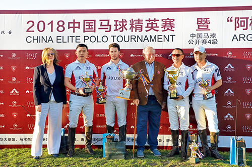 9月23日,2018 中國馬球精英賽(中國馬球公開賽 4 級(jí)賽)暨“阿根廷共和國杯”馬球賽決賽在唐人馬球馬術(shù)俱樂部正式打響,本次賽事由“天邊牧業(yè)”特別贊助支持。來自北京、上海、天津、浙江、江西、中國香港等各省市和地區(qū)的精英球手以及來自阿根廷和英國的職業(yè)球手共 17 人,組成 4 支球隊(duì),為觀眾們獻(xiàn)上了精彩的“馬上擊鞠”比拼。決賽當(dāng)天,各國馬球手馳騁賽場(chǎng),最終,AXUS 隊(duì)技高一籌,將兩支冠軍獎(jiǎng)杯“2018 中國馬球精英賽”獎(jiǎng)杯和“阿根廷共和國杯”馬球賽獎(jiǎng)杯收入囊中。 賽事升級(jí),大使親臨 由中國馬術(shù)協(xié)會(huì)、阿根廷共和國駐華大使館、《馬術(shù)》雜志聯(lián)合主辦,由中馬聯(lián)合傳媒、唐人馬球馬術(shù)俱樂部承辦,由天津環(huán)亞國際馬球會(huì)、呼倫貝爾天邊牧業(yè)協(xié)辦的 2018中國馬球精英賽堪稱金秋國內(nèi)最大馬球嘉年華——比賽由三個(gè)重要賽事一起舉辦,分別是中國馬球精英賽、阿根廷共和國杯馬球賽和中國馬球公開賽 4 級(jí)賽,可謂“三賽合一”。不僅如此,比賽在等級(jí)上也突破以往:賽制允許每隊(duì)有一名外籍職業(yè)球手參賽,賽事等級(jí)一躍上升為 4 級(jí)。 自19世紀(jì)后半葉英國人把馬球運(yùn)動(dòng)帶到南美洲,因其得天獨(dú)厚的自然環(huán)境以及馬上運(yùn)動(dòng)的傳統(tǒng),馬球迅速風(fēng)靡阿根廷,一躍成為阿根廷的全民運(yùn)動(dòng)。目前,阿根廷仍然是現(xiàn)代馬球運(yùn)動(dòng)的領(lǐng)軍國家,橫掃各大馬球賽獎(jiǎng)項(xiàng)。為通過馬球促進(jìn)中阿兩國之間的體育文化交流,阿根廷駐華大使 Diego Ramiro Guelar(蓋鐵戈)先生及夫人蒞臨馬球賽現(xiàn)場(chǎng),并在賽前為球手們送上祝福。蓋鐵戈先生表示,作為一個(gè)馬球愛好者,很開心能在中國現(xiàn)場(chǎng)觀看一場(chǎng)馬球賽。他還特別介紹到,本場(chǎng)比賽有一個(gè)“特別驚喜”:阿根廷馬球協(xié)會(huì)主席,同時(shí)也是 10 級(jí)球手的 Eduardo Novillo Astrada 先生將加入比賽隊(duì)伍,作為天邊牧業(yè)隊(duì)的 4 號(hào)后衛(wèi),向優(yōu)勝獎(jiǎng)發(fā)起沖擊。 此外,土耳其大使夫婦、阿根廷農(nóng)業(yè)部部長 Luis Miguel Etchevehere 先生、北京馬協(xié)秘書長陳徹先生、呼倫貝爾天邊牧業(yè)有限公司董事長仇景輝先生、復(fù)星全球合伙人溫曉東先生、中馬國際總經(jīng)理張曉琦女士、天津環(huán)亞國際馬球會(huì)總經(jīng)理彭龍博先生,以及足球明星孫繼海先生等貴賓均數(shù)出席開幕式。 本屆賽事由天邊牧業(yè)特別贊助支持,同時(shí),全球領(lǐng)先的信息與通信技術(shù)(ICT)解決方案供應(yīng)商華為、久久國際集團(tuán)、澳大利亞紅酒品牌飛雁巴倫谷、德瑞駿發(fā)、泉陽泉礦泉水等品牌皆鼎力支持比賽。值得一提的是,天邊牧業(yè)作為本次比賽的特別贊助商,致力于安置退役后馬匹,建有中國首家馬匹福利院。呼倫貝爾天邊牧業(yè)有限公司董事長仇景輝先生強(qiáng)調(diào):“在馬球和馬術(shù)運(yùn)動(dòng)中,馬匹不只是動(dòng)物,還是朋友和戰(zhàn)友。馬匹退役后,選擇在呼倫貝爾一望無際的草原上放牧、療傷、養(yǎng)老,享受科學(xué)的飼養(yǎng)管理,將會(huì)是最好的歸宿之一?!?nbsp; 十級(jí)球手首戰(zhàn)中國 在前一日的預(yù)賽中,AXUS 隊(duì)以 1 球優(yōu)勢(shì)戰(zhàn)勝天邊牧業(yè)隊(duì),快魚隊(duì)在與 1003POLO 隊(duì)的對(duì)決中取勝。因此,周日的決賽首先由天邊牧業(yè)與1003POLO隊(duì)爭(zhēng)奪比賽的優(yōu)勝獎(jiǎng)(季軍)。 在馬球運(yùn)動(dòng)中,每位馬球手都有其級(jí)別(Goal)。阿根廷的評(píng)級(jí)體系將球手的等級(jí)分為 -2 至 10 級(jí),全世界能達(dá)到 10 級(jí)水平的球手寥寥無幾。隨著阿根廷馬球協(xié)會(huì)主席Eduardo 的傾情加入,首場(chǎng)賽事變得無比令眾人期待。唐人馬球俱樂部創(chuàng)始人劉詩來先生作為 Eduardo 的朋友,同時(shí)也是本場(chǎng)比賽中他的隊(duì)友,在馬背上激動(dòng)地說道:“Eduardo是世界上最高級(jí)別比賽‘阿根廷馬球公開賽’的冠軍得主,同時(shí)也是有史以來最年輕的阿根廷馬球協(xié)會(huì)主席。對(duì)我而言,他是目前世界上最偉大的馬球球手之一?!?/div> 在中國歷史上,第一次出現(xiàn) 10 級(jí)球手在馬球賽場(chǎng)上策馬馳騁。由于馬球運(yùn)動(dòng)有等級(jí)平分規(guī)定,參加比拼的兩隊(duì)級(jí)別需要相等或相似,球隊(duì)等級(jí)為所有球員等級(jí)之和,因此Eduardo 的加入使得他所在的天邊牧業(yè)隊(duì)等級(jí)倏忽升高。此時(shí),兩隊(duì)的成績成為其次——對(duì)球手來說,和最頂級(jí)的馬球運(yùn)動(dòng)員同場(chǎng)競(jìng)技是值得珍惜的學(xué)習(xí)機(jī)會(huì);而現(xiàn)場(chǎng)觀眾則不出國門也可一覽最高級(jí)馬球手的賽場(chǎng)風(fēng)采。 在四個(gè)小節(jié)的比賽中,兩隊(duì)比分一直膠著。天邊牧業(yè)隊(duì)在前兩小節(jié)打入兩球,1003POLO 隊(duì)又在第三小節(jié)把比分追平為2:2。中國青年球手奕成和 Clark 等人在比賽中表現(xiàn)突出,Eduardo 則一直收斂實(shí)力,只在比賽將要結(jié)束時(shí)為天邊牧業(yè)隊(duì)打進(jìn)一球,再次將比分追平。裁判只得宣布以點(diǎn)