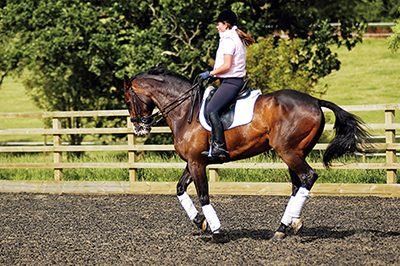 如果以上四個(gè)前提有其一不能達(dá)到,讓馬匹進(jìn)行空中換腿,甚至是完成一個(gè)漂亮空中換腿的機(jī)會(huì)都是非常渺茫的。 而就馬匹本身來(lái)說(shuō),它是知道如何來(lái)做空中換腿的,因?yàn)檫@是它們的本能。讓我們來(lái)套用一下跳水的邏輯:如果你“想”從跳板上跳下去,你便會(huì)組織好自己的每一步,走到跳板盡頭,彈起,一躍而跳下水。而當(dāng)你“不想”跳下去,只是呆站在跳板盡頭,緊盯著水池的時(shí)候,突然有個(gè)人過(guò)來(lái),用力把你推下水,這時(shí)候在觸及水面之前,你可能都不會(huì)再有什么時(shí)間來(lái)考慮動(dòng)作方面的事情。這也便是馬匹對(duì)某些騎手突然性要求空中換腿的應(yīng)對(duì)了。學(xué)習(xí)做空中換腿,首先想到的是最簡(jiǎn)單的名詞定義。即在馬匹四肢騰空時(shí),騎手通過(guò)輔助,要求馬匹做出空中換腿的動(dòng)作。馬匹聽(tīng)從輔助,換腿,聽(tīng)起來(lái)很簡(jiǎn)單,但實(shí)際上并非如此。 讓馬匹進(jìn)行空中換腿,馬匹必須要十分清楚輔助的正確含義。 右跑步的輔助包括:輕微向右彎曲,右腿緊壓肚帶,右臀前傾、向下坐馬鞍,左腿后擺(即距離肚帶一拳距離)。如果馬匹自身意識(shí)提前于這些輔助,當(dāng)感覺(jué)到輔助時(shí),它便會(huì)立即、很自然地變換到右跑步。相反在要求變化到左跑步時(shí),各項(xiàng)輔助則相反:左彎曲,左腿壓肚帶,左臀前傾、向下坐馬鞍,右腿后擺。 為了檢驗(yàn)人馬是否已經(jīng)十分清楚跑步空中換腿的輔助,可以試著在直線上讓馬匹結(jié)合快步,多次練習(xí)空中換腿。具體做法是:在中心線上,跑步完成2-3次換腿動(dòng)作?;貋?lái)時(shí),快步,關(guān)注馬匹的平衡性和直線性。改變輔助,用另外一側(cè)跑步,跑上3-4步,再換腿。如此重復(fù)進(jìn)行練習(xí)。 當(dāng)你一直堅(jiān)持這樣做的時(shí)候,你便會(huì)真正了解到你本人和馬匹是否已充分清楚跑步換腿的輔助了。通過(guò)這樣的練習(xí),馬匹的平衡性也會(huì)有很大的提高。 下面是最有意思的部分,要求變腿。教馬匹做空中換腿,有兩個(gè)基本方法。其一是“舞步”方法,其二是“跳躍”方法。但兩者都是以上述原則為前提的。 “舞步”方法是從反對(duì)跑步入手。按照門外漢的說(shuō)法,反對(duì)跑步中,馬匹會(huì)故意用錯(cuò)腿。也就是說(shuō),在右跑步時(shí),左腿在前。而左跑步時(shí),右腿在前。反對(duì)跑步的目的是讓馬匹更柔軟平衡,如果輔助接受得好,馬匹會(huì)持續(xù)反對(duì)跑步的動(dòng)作。 訓(xùn)練反對(duì)跑步的最簡(jiǎn)單辦法之一就是,從場(chǎng)地長(zhǎng)邊開(kāi)始,距離墻壁(圍欄)至少兩米外(即在第二蹄跡線上)。先快步,然后在直線上跑步。由于馬匹并不是緊貼著墻壁(圍欄),所以墻壁并非其參照物。當(dāng)?shù)蕉踢吷蠒r(shí),轉(zhuǎn)一個(gè)淺彎,不要深扎進(jìn)彎道里,這樣馬匹會(huì)更容易保持反對(duì)跑步。繼續(xù)給馬相應(yīng)的輔助,讓馬匹輕微向正確的方向彎曲。一定要耐心。馬匹在最開(kāi)始進(jìn)行這種訓(xùn)練時(shí),會(huì)很不適應(yīng)。如果最初,它能在短邊做上幾步的時(shí)候,要懂得欣慰。慢慢地,到了最后,它便能夠熟練準(zhǔn)確地在整個(gè)短邊或甚至是更長(zhǎng)的距離上,都能保持住反對(duì)跑步。一旦反對(duì)跑步穩(wěn)固后,便可以開(kāi)始學(xué)習(xí)空中換腿了。 首先,從場(chǎng)地長(zhǎng)邊開(kāi)始做反對(duì)跑步,要特別注意輔助的使用(如果是右腿在前,在左蹄跡線上時(shí),馬匹需要輕微右彎曲,騎手右腿緊壓肚帶,右臀向前,左腿后擺。)。當(dāng)在接近短邊上的第一個(gè)彎道時(shí),讓馬匹走直,在進(jìn)入彎道時(shí),變換輔助,要求馬匹做左跑步。在這個(gè)時(shí)候,馬匹是更愿意換腿的,而不是繼續(xù)維持反對(duì)跑步。 在要求變換時(shí),一定要講究時(shí)機(jī)。跑步是一個(gè)三節(jié)拍的動(dòng)作,正確的做法是在第二個(gè)節(jié)拍上變換輔助,要求馬匹換腿。騎手腿的變換,騎坐的變換和馬匹身體彎曲的方向都是在同一時(shí)間完成的。而且,變換要很果斷,需要在瞬間完成。同時(shí),也最好是在馬匹本身最樂(lè)意變換的時(shí)刻,向它提出相應(yīng)的要求,這樣馬匹才會(huì)完全服從輔助,進(jìn)行空中換腿。這也就是因?yàn)轳R匹在彎道處已經(jīng)開(kāi)始彎曲。 用“跳躍”方法來(lái)教馬匹做空中換腿,和反對(duì)跑步有所不同,但仍需要掌握時(shí)機(jī),而且馬匹要平衡和正直。首先,右跑步,進(jìn)入場(chǎng)地長(zhǎng)邊,做一個(gè)大的半圓。在約45度的對(duì)角線上變換方向,回到長(zhǎng)邊。在要求馬匹變換之前,保持右跑步的輔助。在接近長(zhǎng)邊墻壁(圍欄)時(shí),在跑步的第二個(gè)節(jié)拍上要求變換(一定要保證自己有足夠的空間)后腿后擺,左臀前傾,左腿緊壓肚帶,讓馬匹朝著新的方向(即左邊)彎曲。重心回來(lái),眼睛向上看,在騎坐、腿部和手部輔助變換的同時(shí),要求馬匹進(jìn)行空中換腿。保持跑步向前,不要慢下來(lái)。當(dāng)學(xué)會(huì)了從右跑步到左跑步的變換后,就可以學(xué)習(xí)反方向的動(dòng)作了。 同樣的,馬匹需要完全理解正確的輔助,才會(huì)成功做出空中換腿。如果某一步失敗了,就要回到