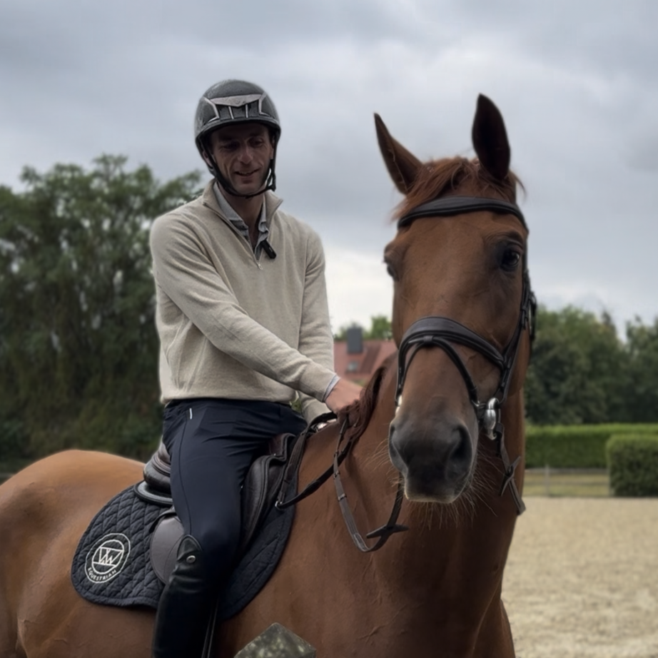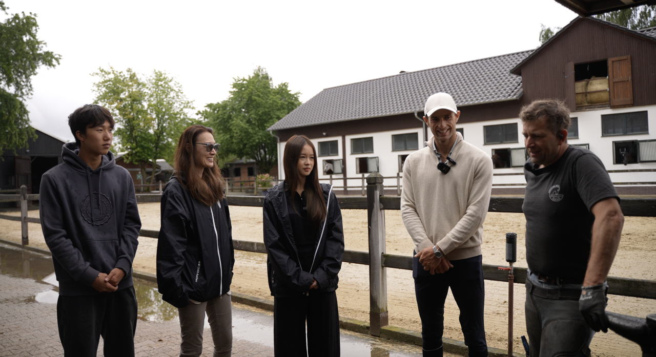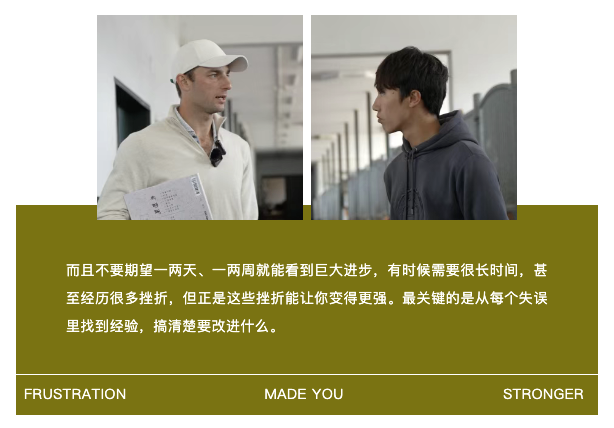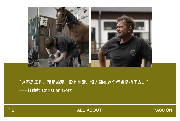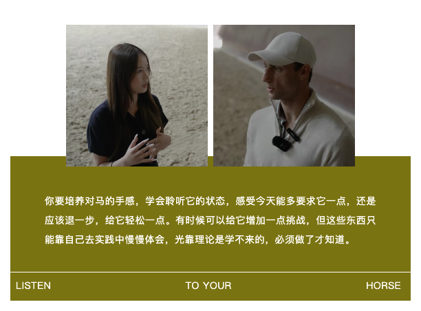 Richard Vogal 2025年仲夏,亞琛世界馬術(shù)節(jié)剛剛謝幕。賽場的光芒散去,草地上的障礙架被逐一搬走,觀眾的歡呼與掌聲漸漸歸于寂靜。但在這份靜默背后,真正的馬術(shù)故事仍在繼續(xù)。 中國年輕騎手尤彥賀、李涵曦隨馬術(shù)雜志、馬術(shù)在線團隊一同走進了勞力士代言人德國騎手理查德·沃格爾(Richard Vogal)的馬房。 在德國法蘭克福的郊外,這里遠離喧囂,卻能看見另一種屬于冠軍的節(jié)奏——對馬匹的溫柔注視,對訓練的執(zhí)著堅持,以及對團隊的深厚信賴。 勞力士代言人理查德·沃格爾 在2025亞琛賽場 ?何亦紅 「ONE」 年輕騎手/騎有經(jīng)驗的馬還是年輕馬 Do you recommend us starting off riding experienced horses or just like trying a variety and doing young horses? (2025.07) Pfungstadt Richard Vgal Stable 采訪團隊走向室外訓練場 ?何亦紅 理查德·沃格爾的馬房位于黑森州Pfungstadt(普芬施塔特),是他與他的團隊的日常訓練場,并承擔著年輕馬的日常調(diào)教與公開展示功能。 馬術(shù)雜志團隊到達的時候,理查德正在訓練場上騎乘一匹氣質(zhì)穩(wěn)重的栗色馬——Sven,他給我們解釋了這匹馬名字的由來頗為可愛:“在動畫片《冰雪奇緣》里有只馴鹿叫Sven,女孩們看它長得像,就給它取了這個名字?!?/span> 理查德解釋,真正能在賽場上脫穎而出的馬,往往要聰明、敏銳、反應(yīng)快,能迅速察覺變化:“有些馬你騎著,轉(zhuǎn)圈轉(zhuǎn)個十分鐘它才意識到‘哦,有人啊’,這種馬通常反應(yīng)也慢,比賽中附加賽拼速度的時候,這種馬就不是最快的。 我們需要那種敏銳的馬,能立刻注意到環(huán)境變化?!钡斆鞯鸟R也常常膽子小,需要時間去適應(yīng),“每匹馬有自己的時間表,有的天賦異稟、進步神速,有的‘開竅晚’,但反而更值得期待。給它們時間,慢慢讓它們適應(yīng)更大的賽場,激發(fā)出真正的潛力,那就是我們的工作?!?/span> 理查德的馬房以高水平競賽+年輕馬培養(yǎng)/交易+種馬展示與育種合作為主,體現(xiàn)著“競技—育種—商業(yè)”一體化的運營路徑。 在訓練場邊,中國青少年騎手李涵曦詢問理查德·沃格爾的建議:“像我們這樣的年輕騎手,應(yīng)該選擇經(jīng)驗豐富的馬,還是多去嘗試不同類型的,包括一些年輕馬?” 理查德的回答并沒有一刀切的絕對,而是緩緩道來一段經(jīng)驗之談:“我覺得多樣化是非常好的。當然,經(jīng)驗豐富的馬更容易學,也更容易跟上節(jié)奏。 而且當你犯錯的時候,它們通常能幫你彌補。但是騎年輕馬我認為也非常重要,因為你能在過程中培養(yǎng)出對馬更敏銳的感覺?!?/span> “我的經(jīng)驗是,訓練得好的馬狀態(tài)比較穩(wěn)定,不會每天差別太大。而年輕馬,你知道,它們有時候狀態(tài)特別好,有時候可能就不太行。這時候你就得學會去感受你的馬,今天它能做到什么,能要求它做多少。你也能從它們身上看到進步,通常比老馬快。 像十二三歲的馬,基本上提升空間就有限了,更多是保持它的狀態(tài)和快樂,而不是繼續(xù)去突破。而四五六歲的馬,它們還在成長階段,你可以和它一起成長、一起變得更好。所以我覺得對年輕騎手來說,騎不同類型的馬、包括年輕馬,是很重要的?!?/span> 「TWO」 良好的騎坐/是重要的基礎(chǔ) when you have a very correct position,it's easier to communicatewith your horse. 理查德·沃格爾 對馬房工作親力親為 談及對中國年輕騎手的建議,他的神情認真了許多:“他們都很有抱負,這是好事。我小時候也非??释麑W習,想看到偶像們現(xiàn)場比賽,但機會有限,所以只能一遍遍看比賽視頻,看他們?yōu)槭裁幢任液茫缓蠡氐今R房繼續(xù)練習,反復(fù)調(diào)整自己的騎坐。 騎坐非常重要,它是你和馬交流的語言。姿勢正確了,不論哪匹馬都能理解你?!?/span> “另外,如果比賽出了問題,當然你會沮喪,但最重要的是從失誤里學習。一定要有人幫你錄像,這樣你能回頭看看哪里出了問題,為什么會出問題,然后和教練一起討論、改進,再去訓練,等準備好了再去比賽。 「THREE」 沒有熱愛/無法在這個行業(yè)堅持下去 It's all about passion and you have to wonder it and that's the reason that makes the sense. (2025) Richard Vogal In Aachen 勞力士代言人理查德·沃格爾 在2025亞琛賽場 ?何亦紅 理查德·沃格爾的日常訓練強度大到驚人——常常一天騎10到14匹馬,最多時曾達17匹。能讓這一切高效運轉(zhuǎn)的,是背后聯(lián)系緊密的團隊。 比賽時,主力馬工Felicia Wallin陪伴左右,見證了他職業(yè)生涯的幾乎所有“第一次”;在家里,另一支后勤隊伍悉心照料五十余匹馬,從打圈、森林騎行到障礙訓練,不讓任何一匹馬因他外出參賽而落下訓練進度。 主力馬工Felicia Wallin ?何亦紅 馬術(shù)雜志團隊走進室內(nèi)馬房,這里還有另一群“隱形的冠軍”。理查德·沃格爾的長期合作伙伴、釘蹄師Christian G?tz正是其中之一。他與團隊每天要照看十余匹馬,常常把五天的工作壓縮在兩天半里完成,只為讓每一匹參賽馬都能在周末狀態(tài)完美地走進賽場?!?/span> 其實理查德周末也沒閑著,他自己還要比賽,”Christian笑道,“所以我們整個圈子的人,真正的休息日少得可憐?!?/span> 釘蹄師Christian G?tz ?何亦紅 但在忙碌之外,他們之間也有著難以割舍的默契。理查德·沃格爾回憶起2023年一次險些影響亞琛參賽的“緊急事件”:就在比賽前的那個周日,他不小心剪掉了馬掌上