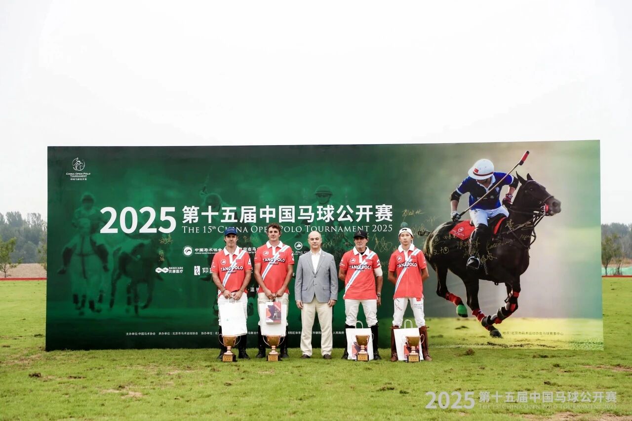 金秋九月,草色如茵,為期兩天的第十五屆中國(guó)馬球公開(kāi)賽于9月27日在位于北京溫榆河公園的北京市馬術(shù)運(yùn)動(dòng)協(xié)會(huì)馬球賽事中心圓滿(mǎn)落幕。 本屆中國(guó)馬球公開(kāi)賽由中國(guó)馬術(shù)協(xié)會(huì)主辦,北京市馬術(shù)運(yùn)動(dòng)協(xié)會(huì)承辦,北京博華資本有限公司、中馬聯(lián)合傳媒公司協(xié)辦,北京市朝陽(yáng)區(qū)體育局、北京市朝陽(yáng)區(qū)孫河鄉(xiāng)人民政府、北京溫榆河公園聯(lián)合支持。貝康醫(yī)療、北京仰望中心、聯(lián)合麗格(北京)醫(yī)療美容投資連鎖集團(tuán)股份有限公司、波龍堡酒業(yè)、統(tǒng)一綠茶、奔流體育和匯豐銀行等品牌深度參與。 本次中國(guó)馬球公開(kāi)賽決賽吸引了眾多領(lǐng)導(dǎo)嘉賓蒞臨現(xiàn)場(chǎng),共同見(jiàn)證這一激動(dòng)人心的時(shí)刻。出席決賽的領(lǐng)導(dǎo)和嘉賓包括:中國(guó)馬術(shù)協(xié)會(huì)秘書(shū)長(zhǎng)鐘國(guó)偉先生,北京市體育局副局長(zhǎng)石風(fēng)華女士,朝陽(yáng)區(qū)委常委、常務(wù)副區(qū)長(zhǎng)趙海東先生,北京朝陽(yáng)文旅發(fā)展集團(tuán)有限公司黨委書(shū)記、董事長(zhǎng)韋平先生,朝陽(yáng)區(qū)孫河鄉(xiāng)黨委書(shū)記張繼明先生。 此外,著名表演藝術(shù)家濮存昕老師,著名演員王千源先生、李光潔先生,以及著名足球運(yùn)動(dòng)員孫繼海先生也親臨現(xiàn)場(chǎng)觀賽,為中國(guó)馬球運(yùn)動(dòng)加油助威。 9月27日決賽的開(kāi)幕式上,四支參賽隊(duì)伍從場(chǎng)地兩側(cè)隆重入場(chǎng),由北京仰望中心提供的仰望U8新能源越野汽車(chē)領(lǐng)陣。隨著國(guó)歌奏響,全場(chǎng)莊嚴(yán)肅穆。 隨后,中國(guó)馬術(shù)協(xié)會(huì)秘書(shū)長(zhǎng)鐘國(guó)偉先生發(fā)表致辭。 中國(guó)馬術(shù)協(xié)會(huì)秘書(shū)長(zhǎng)鐘國(guó)偉先生致辭 著名表演藝術(shù)家濮存昕先生為第一場(chǎng)比賽開(kāi)球,瞬間點(diǎn)燃全場(chǎng)氣氛,賽事正式拉開(kāi)帷幕。 著名表演藝術(shù)家濮存昕先生開(kāi)球 ——1—— 本屆賽事共有四支隊(duì)伍參賽:博華隊(duì)、唐人隊(duì)、快魚(yú)隊(duì)、天津光合谷隊(duì),匯聚了70后老將與90后、00后新銳球員。 博華隊(duì)由劉詩(shī)來(lái)、徐文博、寶音德力根和馬蒂亞斯·巴列斯特羅斯(Matias Ballesteros)組成;唐人隊(duì)的陣容包括劉書(shū)翰、阿德里亞諾·阿戈斯蒂(Adriano Agosti)、佩德羅·費(fèi)爾南多(Pedro Fernandez Llorente)和帕特里克·塔德奧(Patricio Taddeo);快魚(yú)隊(duì)則由饒忠明、李艷陽(yáng)、魏伯贊與羅德里格·布拉達(dá)(Rodrigo Bauzada)出戰(zhàn);天津光合谷隊(duì)由關(guān)昊云、陳瀟雨、陳雅列和費(fèi)楚·費(fèi)爾南多(Rafael Fernando Erreguerena)攜手出戰(zhàn)。 值得一提的是,本次賽事特別邀請(qǐng)了來(lái)自阿根廷的國(guó)際級(jí)裁判胡安·曼努埃爾·多明格斯(Juan Manuel Dominguez)執(zhí)裁,確保比賽的專(zhuān)業(yè)與公正。 蔡猛先生(右)擔(dān)任賽事主持人,新生代騎手關(guān)昊云(左)進(jìn)行第一場(chǎng)賽事專(zhuān)業(yè)解說(shuō) 冠軍爭(zhēng)奪戰(zhàn)中,快魚(yú)隊(duì)在上半場(chǎng)以1:0領(lǐng)先,第三節(jié)一度被博華隊(duì)追平,但很快再次打破僵局,并在第四節(jié)連得兩分,鎖定勝局??祠~(yú)隊(duì)?wèi){借默契配合和關(guān)鍵時(shí)刻的爆發(fā),以4:1贏得比賽。 比賽間歇,觀眾們走進(jìn)場(chǎng)地,體驗(yàn)馬球觀賽中頗具趣味的“踩草坪”環(huán)節(jié):大家一邊將被馬蹄翻起的草皮輕輕踩實(shí),一邊在草坪中尋找隱藏的酒瓶塞,贏取精美獎(jiǎng)品。賽場(chǎng)瞬間化身為熱鬧的“尋寶地”,在笑聲與掌聲中增添了更多參與感與儀式感。 ——2—— 隨著阿根廷駐華大使馬致遠(yuǎn)(Marcelo Gabriel Suárez Salvia)一記精彩的開(kāi)球,第二場(chǎng)比賽正式開(kāi)始。第二場(chǎng)的賽事解說(shuō)為《馬術(shù)》雜志主編李艷陽(yáng)先生與專(zhuān)業(yè)馬球雙語(yǔ)解說(shuō)員欒奕女士。 阿根廷駐華大使馬致遠(yuǎn)先生開(kāi)球 唐人隊(duì)以3:0開(kāi)局奠定優(yōu)勢(shì),盡管天津光合谷隊(duì)奮力追回兩分,但唐人隊(duì)穩(wěn)扎穩(wěn)打,最終以5:2贏下比賽。 ——3—— 比賽結(jié)束后,三位來(lái)自阿根廷的高橋人策馬入場(chǎng),身著民族服飾,伴隨著熱情洋溢的阿根廷音樂(lè),手持中阿兩國(guó)國(guó)旗,展現(xiàn)高超的馴馬技術(shù)。他們與馬匹的默契配合贏得場(chǎng)邊觀眾陣陣掌聲,將現(xiàn)場(chǎng)氛圍推向高潮。 頒獎(jiǎng)儀式 2025年9月27日 天津光合谷隊(duì)獲得紀(jì)念獎(jiǎng) 頒獎(jiǎng)嘉賓:北京市馬術(shù)運(yùn)動(dòng)協(xié)會(huì)秘書(shū)長(zhǎng)劉楠先生(右一) 博華隊(duì)獲得紀(jì)念獎(jiǎng) 頒獎(jiǎng)嘉賓:北京市馬術(shù)運(yùn)動(dòng)協(xié)會(huì)秘書(shū)長(zhǎng) 劉楠先生(中) 唐人隊(duì)獲得優(yōu)勝獎(jiǎng) 頒獎(jiǎng)嘉賓:阿根廷駐華大使 馬致遠(yuǎn)先生(中) 快魚(yú)隊(duì)奪得冠軍 頒獎(jiǎng)嘉賓:中國(guó)馬術(shù)協(xié)會(huì)秘書(shū)長(zhǎng) 鐘國(guó)偉先生(中) 唐人隊(duì)的騎手阿德里亞諾·阿戈斯蒂(Adriano Agosti)憑借精湛表現(xiàn)榮膺“最佳球手獎(jiǎng)”。 阿德里亞諾·阿戈斯蒂獲得“最佳球手獎(jiǎn