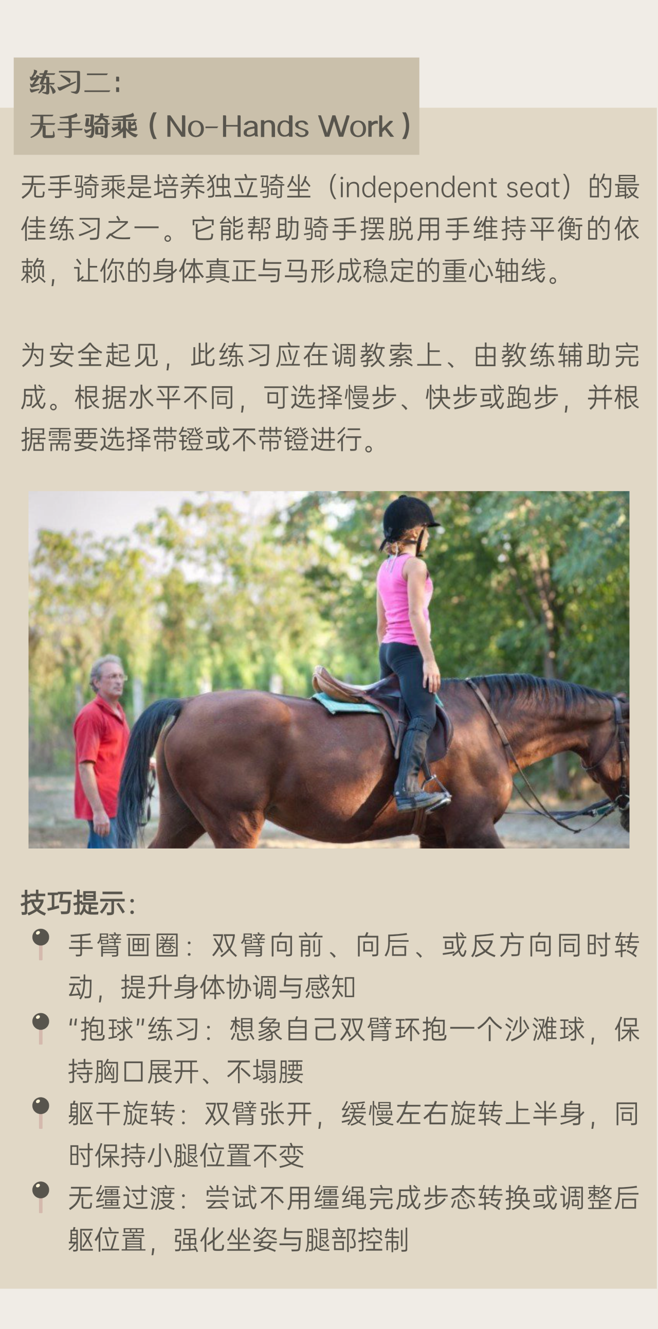 學(xué)習(xí)如何在騎乘中改善平衡,是成為一名高效騎手的基礎(chǔ)。無(wú)論是在復(fù)雜的障礙賽場(chǎng)上追求高度與精準(zhǔn)、在盛裝舞步中追求優(yōu)雅動(dòng)作,還是只是享受一段輕松的林間騎行,騎手能否保持身體居中、穩(wěn)定、與馬匹相連,是實(shí)現(xiàn)人與馬溝通的關(guān)鍵。 然而,真正的平衡并非一蹴而就,即使對(duì)經(jīng)驗(yàn)豐富的騎手來(lái)說(shuō),這也是一個(gè)持續(xù)探索的過(guò)程。 平衡訓(xùn)練的核心,不是追求某個(gè)標(biāo)準(zhǔn)姿態(tài),而是培養(yǎng)“感知力”。當(dāng)騎手學(xué)會(huì)通過(guò)核心去穩(wěn)定、通過(guò)腿去引導(dǎo)、通過(guò)騎坐去溝通,馬匹也會(huì)在你的身體信號(hào)中獲得安全感與方向感。 |