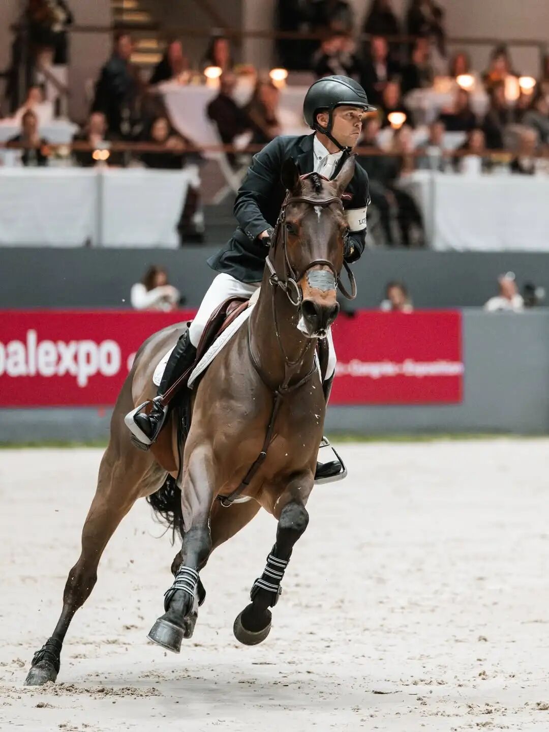 這是一場世界排名第一與第二之間的對決,勝負關(guān)鍵在第二輪最后一個障礙前的回轉(zhuǎn)。 ?CHIG 日內(nèi)瓦當?shù)貢r間12月12日晚,2025年日內(nèi)瓦國際馬術(shù)節(jié)焦點賽事——勞力士IJRC十強決賽在Palexpo場館落下帷幕。經(jīng)過兩輪激烈角逐,英國名將斯科特·布拉什(Scott Brash)搭檔“Hello Chadora Lady”以零罰分、45.63秒的優(yōu)異表現(xiàn)奪冠,時隔十一年再度登頂這項傳奇賽事。 斯科特·布拉什搭檔12歲的奧登堡母馬“Hello Chadora Lady”完成了一次更緊湊的回轉(zhuǎn),比世界第一肯特·法靈頓(Kent Farrington)快了0.16秒。法靈頓搭檔11歲的荷爾施泰因母馬“Toulayna”獲得亞軍。 決賽夜精彩對決 比賽于當?shù)貢r間晚9:30正式開始,十位世界排名最高的騎手按排名倒序出場。瑞士本土人氣騎手史蒂夫·戈爾達(Steve Guerdat)率先登場,在休賽三個月后復(fù)出即獲熱烈反響。 現(xiàn)任世界杯總決賽冠軍,法國騎手朱利安·埃帕拉德搭檔馬匹“Donatello d'Auge”在三重組合障礙出現(xiàn)失誤,與愛爾蘭的丹尼爾·考伊、荷蘭的哈里·斯莫爾德斯、德國的理查德·福格爾及英國的本·馬赫同獲罰分。 ?馬術(shù)在線/何亦紅 首輪僅三位騎手保持零罰分:比利時騎手吉爾斯·托馬斯(Gilles Thomas)、英國騎手斯科特·布拉什以及現(xiàn)世界排名第一的美國騎手肯特·法靈頓。 第二輪形勢逆轉(zhuǎn) 第二輪按首輪成績倒序出場,壓力顯著升級。此前罰分的騎手中,僅哈里·斯莫爾德斯與理查德·福格爾維持了原有罰分。埃帕亞爾、考伊及德國奧運冠軍克里斯蒂安·庫庫卡(Christian Kukuk)再添失誤,本·馬赫則因馬匹拒跳遭淘汰。 冠軍爭奪在四位零罰分騎手間展開:史蒂夫·戈爾達與吉爾斯·托馬斯先后出現(xiàn)障礙失誤,最終演變?yōu)樗箍铺亍げ祭才c肯特·法靈頓的直接對決。布拉什以45.63秒零罰分率先完賽,法靈頓雖同樣零罰分,但45.79秒的用時稍遜一籌,屈居亞軍。 ?CHIG “這種感覺太棒了,”布拉什在頒獎儀式后表示,“‘Hello Chadora Lady’表現(xiàn)非常出色,我們一直彼此信任。能在十一年后再次贏得這項賽事,意義非凡?!?/div>