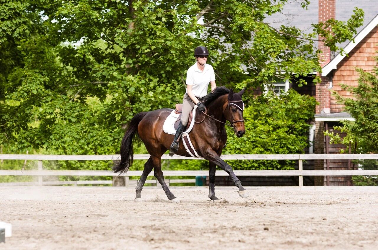 是否時常在訓(xùn)練時聽到教練在喊:“換腿!跑反了!”但自己卻不太清楚到底該怎么做、為什么會跑反、以及為什么需要換腿。在障礙或盛裝舞步訓(xùn)練中,空中換腿更像是一面鏡子,真實反映了一匹馬在跑步平衡、力量以及理解騎手輔助方面的整體水平。 要真正訓(xùn)練好空中換腿,必須回到更基礎(chǔ)的問題:它是什么、為什么需要、以及如何在不破壞跑步質(zhì)量的前提下做到。 空中換腿是指馬在保持跑步節(jié)奏不變的情況下,于騰空階段,也就是四蹄同時離地的瞬間完成跑步領(lǐng)先腿的轉(zhuǎn)換。 一個正確的空中換腿應(yīng)具備以下特征: ·前后肢在同一個騰空節(jié)奏中完成換腿 ·跑步節(jié)奏、拍子與向前性不被打斷 ·馬在換腿后仍保持平衡、向上、可操控的跑步 在盛裝舞步中,換腿會被嚴(yán)格評判;而在障礙賽中,評判重點不在動作本身,而在于換腿是否服務(wù)于路線的流暢性與跳躍質(zhì)量。 跑步是一種明顯的偏側(cè)運動形式。長期使用同一側(cè)領(lǐng)先腿,會讓該側(cè)承受更多負(fù)荷,逐漸影響身體對稱性與整體平衡。通過換腿,馬可以在運動中重新分配肌肉與關(guān)節(jié)的負(fù)擔(dān),從而維持跑步的穩(wěn)定與效率。 在障礙與三項賽中,跑步領(lǐng)先腿會影響接近障礙時的路線角度、起跳前的最后幾步質(zhì)量和落地后的方向與節(jié)奏銜接。如果馬在錯誤的領(lǐng)先腿上接近或離開障礙,往往會導(dǎo)致失衡、距離判斷困難,甚至拒跳。 在較低級別或路線簡單且馬自身平衡良好的情況下,騎手可以通過反跑步(Counter Canter)來維持節(jié)奏與平衡,而不必每次都要求換腿。但隨著障礙高度增加、路線變緊湊并且轉(zhuǎn)彎角度變復(fù)雜后,空中換腿會從“可有可無”,逐漸變成“不可或缺”。此時,如果不能可靠地完成換腿,就必須具備極高質(zhì)量的反跑步能力,否則跑步質(zhì)量與線路流暢性都會受到影響。 空中換腿本質(zhì)上不是一個獨立動作,而只是“下一個跑步步幅”。因此,任何換腿前需要保證:跑步有充足的力量與向前動能;步幅是圓的、有彈性的、向上騰起的;節(jié)奏清晰,不扁平、不拖沓。如果跑步本身缺乏質(zhì)量,馬就沒有足夠的騰空時間來完成換腿,換腿自然會變得混亂且勉強。 在正式訓(xùn)練空中換腿之前,馬應(yīng)當(dāng)具備以下基礎(chǔ): 01 穩(wěn)定的簡單換腿(Simple Change) 即跑步–慢步–跑步的移形轉(zhuǎn)換: 向下過渡必須清晰進(jìn)入慢步,而非拖入快步 向上過渡應(yīng)迅速、明確,但不過度爆發(fā) 過渡前需通過收集性減卻避免馬壓到前肢 02 平衡的反跑步 能在直線與圈乘中穩(wěn)定維持 在反跑步中可以進(jìn)行伸長與收縮,而不自行換腿 03 收縮跑步(Collected Canter) 跑步節(jié)奏舒適而可控 跑步步幅有高度與彈性 通過肩內(nèi)、橫向運動、連續(xù)簡單換腿等運動來鞏固 推薦練習(xí): 可以在直徑10~15米的8字中央反復(fù)做簡單換腿,直到馬開始預(yù)判并理解換腿信號,也可以通過在第一蹄跡線完成連續(xù)8~10次正確領(lǐng)先腿的跑步發(fā)進(jìn)來確認(rèn)馬已經(jīng)真正理解騎手對左右跑步的區(qū)分要求。只有在直線、平衡、流暢的情況下做到這一點,才適合正式要求空中換腿。 輔助的時機 空中換腿的輔助應(yīng)在當(dāng)前領(lǐng)先腿向前時給出,也就是騰空前的瞬間。輔助給得太晚,馬已錯過騰空階段;給得太早,則容易引發(fā)提前換或節(jié)奏紊亂。 輔助的邏輯(以左換右為例) 坐骨:右側(cè)坐骨略向前,引導(dǎo)身體方向 新內(nèi)方腿(右腿):在肚帶位置貼緊,維持向前 新外方腿(左腿):快速、短促地向后給出提示 新外方韁:短暫穩(wěn)定,幫助保持平衡 新內(nèi)方韁:放松,允許馬新的內(nèi)方前腿向前擺動 輔助應(yīng)當(dāng)清晰、果斷但不過度 在障礙場地上,有兩個有效的方向性練習(xí): 方向控制與輔助 在越過障礙后立即進(jìn)入需要換腿的方向或目標(biāo)路線,可以幫助馬清晰理解下一步。騎手應(yīng)通過重心的細(xì)微轉(zhuǎn)移、腿部輔助以及視線指引,在落地瞬間引導(dǎo)馬進(jìn)入新的跑步方向。 簡化的跳躍輔助 如果馬對空中換腳尚不熟練,可以利用交叉桿、小障礙讓馬在跳躍騰空時自然選擇落地領(lǐng)先腿??梢酝ㄟ^放置兩根地桿:一根從左到右抬高,另一根從右到左抬高。當(dāng)跑步通過地桿時,打開內(nèi)方手,并將馬轉(zhuǎn)向你希望的方向,鼓勵它完成換腿,左右交替練習(xí)。 空中換腿并不是一個孤立的技巧,而是馬匹整體訓(xùn)練水平的自然結(jié)果。真正成熟的換腿訓(xùn)練,并不是“教會馬換腿”,而是在不破壞跑步本質(zhì)的前提下,讓換腿成為自然發(fā)生的選擇。 |