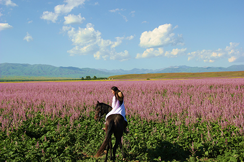 父親十七歲在新疆部隊(duì)做弼馬溫,看管軍馬。而我現(xiàn)在湖南也做了個(gè)弼馬溫,除了主持工作之外還經(jīng)營(yíng)著一家馬術(shù)俱樂(lè)部:新江國(guó)際馬術(shù)俱樂(lè)部。 新疆于我,是遙遠(yuǎn)記憶深處的夢(mèng)。母親對(duì)我說(shuō):丹丹,你滿周歲那天,在新疆草原上學(xué)會(huì)了走路。父親告訴我:丹丹,你還不會(huì)走路之前,我就把你放在軍馬的馬背上開始學(xué)騎馬了。 可自六歲隨父親轉(zhuǎn)業(yè)回到湖南,新疆的草原,就已經(jīng)成為我靈魂里抹不去卻又看不見(jiàn)的夢(mèng)境!然而,這夢(mèng)在 2015 年夏天突然被照進(jìn)現(xiàn)實(shí)。 尋夢(mèng)之旅啟程 7 月初,我受到邀請(qǐng)前往昭蘇主持并解說(shuō)中國(guó)馬會(huì)在伊犁天馬節(jié)上舉辦的絲綢之路·中國(guó)杯速度賽,驚喜與忙亂中整理行裝,拿著機(jī)票登上飛機(jī)時(shí),仍然恍若夢(mèng)中,感覺(jué)那么的不真實(shí)。 從湘江之南到天山之北,早八點(diǎn)至晚八點(diǎn)十二個(gè)小時(shí)的輾轉(zhuǎn)顛簸,我竟一路都未合眼,莫名的興奮。直到在機(jī)窗外看到白云下面連綿起伏的祁連雪山、再轉(zhuǎn)乘小飛機(jī)抵達(dá)伊寧時(shí)才意識(shí)到,此刻的我已經(jīng)切切實(shí)實(shí)地踏在第二故鄉(xiāng)的土地上,湖南弼馬溫的尋夢(mèng)之旅已經(jīng)啟程。 天山是世界七大山系之一,位于地球上最大的一塊陸地,歐亞大陸的腹地。天山東西橫跨中國(guó)、哈薩克斯坦、吉爾吉斯斯坦和烏茲別克斯坦四國(guó),全長(zhǎng)2500 公里,綿延中國(guó)境內(nèi) 1700 公里。天山山脈把新疆大致分成南疆和北疆,南邊是塔里木盆地,北邊是準(zhǔn)噶爾盆地。 天山的托木爾峰、博格達(dá)峰和汗騰格里峰終年積雪,云霧繚繞。夏季來(lái)臨,雪山融雪孕育的河流在天山腳下蜿蜒,滋潤(rùn)著廣袤的草場(chǎng),形成翡翠般的湖泊和險(xiǎn)峻的峽谷,哈薩克族、蒙古族的牧民們?cè)谶@里生活棲息,轉(zhuǎn)場(chǎng)放牧,全然雪域高原田園牧歌式的場(chǎng)景。 來(lái)機(jī)場(chǎng)接我的是兩位帥哥,告訴我要開車穿過(guò)伊寧河,翻過(guò)天山的一座主峰才能抵達(dá)昭蘇縣城。于是,沿途的雪山、草甸、湖泊、峽谷,都被我拍進(jìn)了相機(jī)里!一切都是如此的遼闊和純凈,情不自禁一起放聲高歌:咱們新疆好地方吖,天山南北好牧場(chǎng)! 從冬天直接過(guò)度到夏季的昭蘇大草原,此時(shí)正是綠草如茵,牛羊遍野的最美時(shí)節(jié)。雪山近在眼前,云兒觸手可及,馬兒在山坡上自由地吃草,一幅純美的自然畫卷?yè)涿娑鴣?lái)。 我們的頭頂一路陽(yáng)光燦爛,但車窗前的路面上卻濕漉漉的,司機(jī)說(shuō)雨一直在我們的前方下著,這是山神在幫我洗凈旅途的風(fēng)塵。 昭蘇,這個(gè)新疆雨量最為充沛的縣域,也是新疆唯一沒(méi)有荒漠的縣域,烏孫古國(guó)的遺址,天馬的故鄉(xiāng)。現(xiàn)在我終于走進(jìn)這片被上天過(guò)分寵愛(ài)的土地,去領(lǐng)略它大氣坦蕩的美,渾然天成的美,并不只是靜靜欣賞,卻也可以去觸摸去叨擾。 絲路歡歌天馬情 天馬節(jié)召開的消息早在兩個(gè)月前就傳了出去,方圓幾百公里的牧民們都穿著節(jié)日盛裝攜家?guī)Э趶乃拿姘朔节s來(lái),哈薩克族、維吾爾族、蒙古族等各民族的同胞們共聚一場(chǎng)屬于他們的盛大節(jié)日!所以這小小的縣城房源爆滿,遠(yuǎn)郊的鄉(xiāng)村氈房也都住滿了前來(lái)過(guò)節(jié)的人們! 7月12日,2015 新疆伊犁天馬國(guó)際旅游節(jié)在昭蘇盛大開幕,天馬文化旅游園人山人海,座無(wú)虛席,來(lái)自國(guó)內(nèi)外的嘉賓、游客、演職人員近萬(wàn)人參加了開幕式。在藍(lán)天白云、連綿雪山、絢爛花海、無(wú)際草原的映襯下,開幕式成了一幅絕美的畫卷,一片歡樂(lè)的海洋。 昭蘇是古絲綢之路的北道重鎮(zhèn),絲路上的古驛站。兩千年多來(lái),人們?cè)跒鯇O山下這片遼闊的草原繁衍生息,創(chuàng)造出絢麗多彩的文化,孕育了淳樸的民族風(fēng)情,積淀了厚重的歷史記憶,保持了自然與人類的和諧共存。 開幕式主題是“絲路歡歌天馬情”,現(xiàn)場(chǎng)彩綢翻飛,綠裙飛揚(yáng),綠衣少女們用靈動(dòng)的舞姿闡釋著昭蘇的生命之色。兩千多年前,這片綠色大地成為絲綢之路北道要徑。古往今來(lái),綠色滋養(yǎng)昭蘇生靈,凝聚各族人民,這抹綠是絲綢之路的永恒記憶?!安皇菑堯q通西域,安得佳種自西來(lái)”。2100 多年前,張騫兩次出使西域,打通了這條聯(lián)接西域與中原文明的商貿(mào)文化通道,成就了新疆與祖國(guó)內(nèi)地血肉相連的千古佳話。從此,絡(luò)繹不絕的各國(guó)商賈通過(guò)絲綢之路進(jìn)行各類商品貿(mào)易,使這條綿延萬(wàn)里的“絲綢之路”不再荒涼,讓文明在此匯聚。 開幕式上,中國(guó)馬業(yè)協(xié)會(huì)理事長(zhǎng)賈幼陵為“天山論馬”高峰論壇永久會(huì)址授牌,昭蘇自此成為中國(guó)“天山論馬”高峰論壇永久會(huì)址。自治區(qū)旅游局黨組成員、紀(jì)檢組長(zhǎng)陶軍英為夏塔 4A 級(jí)景區(qū)授牌。 州黨委書記黃三平和中國(guó)馬業(yè)協(xié)會(huì)理事長(zhǎng)賈幼陵一起敲響開賽銅鑼,中國(guó)馬業(yè)協(xié)會(huì)一級(jí)賽絲綢之路·中國(guó)杯速度賽(純血馬組 2000 米)正式開賽,我也開始了正式的主持