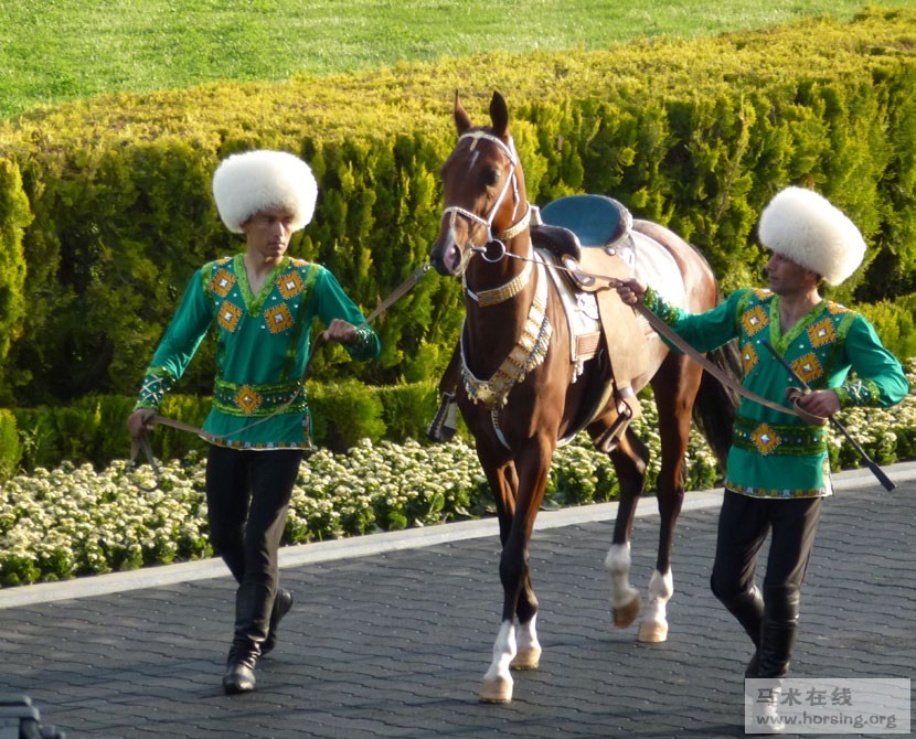 從古至今,世界上好馬很多,“汗血寶馬”的名號(hào)在中國(guó)歷史上頗為響亮,現(xiàn)在大家都知道它們有個(gè)學(xué)名叫阿哈捷金馬。 阿哈捷金馬在古老的馬種體系里占有一席之地,現(xiàn)代的很多優(yōu)秀馬匹種群中都有它的基因影響存在。但是在現(xiàn)代的體育競(jìng)技中,論耐力,阿拉伯馬還是獨(dú)占鰲頭;論速度,英國(guó)純血馬當(dāng)仁不讓?zhuān)徽擇R術(shù)比賽,無(wú)論是舞步還是障礙賽,歐洲溫血馬都是出場(chǎng)率第一,那么,阿哈捷金馬的優(yōu)勢(shì)在哪里?它為何還能引致眾多的關(guān)注和熱衷? 《馬術(shù)》雜志有幸至阿哈捷金馬的故鄉(xiāng)土庫(kù)曼斯坦,親歷他們每年一度的阿哈捷金馬大會(huì),探訪它們生活的國(guó)度,了解它們?cè)诂F(xiàn)在和未來(lái)存在的意義。 “早上起來(lái)先去給父親問(wèn)安,然后去給我的阿哈捷金馬問(wèn)安”。這是土庫(kù)曼人對(duì)他們的國(guó)寶的態(tài)度。 土庫(kù)曼斯坦位于亞洲中部,與烏茲別克斯坦、伊朗和阿富汗接壤,西面是里海,但國(guó)內(nèi)大部分是沙漠,是世界上最干旱的地區(qū)之一。它是前蘇聯(lián)加盟共和國(guó)之一,1991 年蘇聯(lián)解體后獨(dú)立出來(lái),現(xiàn)在為一個(gè)中立國(guó)家。土庫(kù)曼斯坦的農(nóng)業(yè)和畜牧業(yè)很發(fā)達(dá),種植棉花和小麥,所以紡織品發(fā)達(dá),主食以面食為主;而畜牧業(yè)的主導(dǎo)就是著名的阿哈捷金馬。除此之外,這里還有著豐富的天然氣,是這個(gè)國(guó)家的支柱產(chǎn)業(yè)。 城市與馬文化 首都阿什哈巴德是位于一片沙漠中的綠洲。這里幾乎沒(méi)有重工業(yè),空氣清新,環(huán)境優(yōu)美,居民的幸福指數(shù)很高。政府為每個(gè)家庭每月補(bǔ)貼汽油費(fèi),水電和燃?xì)赓M(fèi)用也極其便宜;由于人口少,公共交通便捷,而且價(jià)格非常低廉。 阿什哈巴德的城市分為新城和舊城,新城區(qū)一色的白色大理石建筑,被稱(chēng)為“大理石之城”,滿城的白色房屋和綠樹(shù)在沙漠地區(qū)特有的高強(qiáng)度陽(yáng)光照耀下,清新奪目。據(jù)新華社駐土庫(kù)曼斯坦的資深記者盧老師介紹,這里的草地沒(méi)有不許踩踏的限制,讓我這個(gè)從小看著“請(qǐng)愛(ài)護(hù)草坪”、“請(qǐng)勿踐踏違者罰款”提示牌的北京孩子激動(dòng)萬(wàn)分,忍不住上去溜達(dá)幾步,草皮柔軟有彈性。這里的綠地非常多,阿城的人對(duì)環(huán)境極為保護(hù),他們習(xí)慣不在路上丟棄任何垃圾和廢物,哪怕是風(fēng)吹過(guò)身邊一張紙片,他們也會(huì)上前撿起來(lái)。城市整潔得過(guò)分。 據(jù)說(shuō)舊城那邊煙火氣更濃一些。于是我和中央電視臺(tái)的三位同仁在某天下午跑去參觀了一番。只是人、車(chē)多些,建筑略舊,但依然是干干凈凈的道路。路兩旁種著桑樹(shù),滿滿地掛著桑葚,低低的枝條垂到人的頭上。路上沒(méi)有堵車(chē),“如果偶爾有,”開(kāi)車(chē)搭我們的司機(jī)說(shuō),“那是總統(tǒng)出行了,等一會(huì)兒或者換條路,不會(huì)耽誤太久的?!边@里的出租車(chē)極少,所以不限制私家車(chē)搭載乘客,只需要付一點(diǎn)點(diǎn)費(fèi)用。我們認(rèn)知意義上的“黑車(chē)”在這里是合法的。超市到天黑就全都下班了,看來(lái)人們的生活很安逸。 另一個(gè)讓人印象深刻的,就是城市里無(wú)處不在的馬雕塑。同行的小葉給我們講解,這個(gè)是建國(guó)5 周年的,那個(gè)是8 周年的,在城市的另一個(gè)方向還有10 周年的,這些紀(jì)念碑有個(gè)共同的特點(diǎn),頂端都是阿哈捷金馬,奔跑的,揚(yáng)蹄的,奮力向前的,站立的,各種各樣的姿態(tài)。在咖啡館和餐廳里,也都掛有馬匹的畫(huà)像,昂首站立的阿哈捷金馬有著各種閃亮的毛色,它們的身上披掛著金色的裝飾,悄然靜止或是恣意閑適,美麗端莊。 三項(xiàng)賽的后備軍 作為世界上最古老的馬種之一,阿哈捷金馬的發(fā)展是現(xiàn)今要解決的最重要的問(wèn)題。在速度上,它不及純血馬,耐力上稍遜阿拉伯馬,在土庫(kù)曼斯坦4 月底舉行的阿哈捷金馬大會(huì)上,它跳躍障礙的高度在130cm 左右,并非障礙賽的良好伙伴,那么,它該以一種什么樣的功用進(jìn)入馬術(shù)世界呢?又或者僅僅局限于中亞的故鄉(xiāng),而不能在其他方面有所發(fā)展? 阿哈捷金馬在全世界只有大約6000 匹,其中故鄉(xiāng)土庫(kù)曼斯坦存有3000余匹,據(jù)裁判張目老師介紹,在國(guó)外,俄羅斯分布最廣,約有2000 匹;其余則分布在世界各地。土庫(kù)曼對(duì)于阿哈捷金馬的珍愛(ài)程度不亞于中國(guó)對(duì)待大熊貓,他們從不出售自己的馬,除非在表示兩國(guó)友好的時(shí)候,作為禮物贈(zèng)送給國(guó)家領(lǐng)導(dǎo)人。中國(guó)領(lǐng)導(dǎo)人就曾收到過(guò)土庫(kù)曼斯坦贈(zèng)送的阿哈捷金馬,它們?cè)谥袊?guó)已經(jīng)有了后代。個(gè)人如果獲得它,只有從俄羅斯和哈薩克斯坦進(jìn)口了,近幾年,我國(guó)民間從哈薩克斯坦的進(jìn)口量最大。 那么,這樣一個(gè)從不出售、不媚外,不與其他血統(tǒng)混淆的馬種,該如何定位它的發(fā)展戰(zhàn)略,是每一個(gè)喜愛(ài)阿哈捷金馬的人都想知道的問(wèn)題。 在4 月26 日舉行的第三屆世界阿哈捷金馬協(xié)會(huì)代表大會(huì)上,土庫(kù)曼斯坦總統(tǒng)、世界