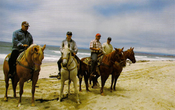 加利福尼亞州的內(nèi)華達(dá)山脈,我站在海拔3600米處,雙腳蹬住水下黝黑的巖石,迎著湍急的水流,將身體伸展在冰川融水形成的清冽山溪里。岸邊,那匹名叫懷特的強壯的夸特馬安靜地等著我。一邊的牛仔泰勒斜靠在白色巨石上,嘴里嚼著辛辣的野草莖,濃密的胡子在陽光下泛著微微的金色。水聲隆隆,但心卻平靜得出奇??绾浊Ч?,策馬萬仞高山,讓心靈隨著馬蹄從紛亂走到祥和,這正是我想要的穿越。 今年7月,經(jīng)過十幾個小時的飛行,我們一行三人(翁布、陳亮和我)到達(dá)了美國加州的舊金山市。無心欣賞舊金山城市美景,下飛機,我們就迫不及待地驅(qū)車開往地處內(nèi)華達(dá)山脈的優(yōu)仙美地國家森林公園周邊的Bridgeport小鎮(zhèn),那里將是我們這次牛仔之旅的起點。 穿過綠樹黃草的加州丘陵地帶,臨近傍晚時分,我們進(jìn)了山。山中古木參天,溪水潺潺,度假小屋若隱若現(xiàn)地從車窗外閃過。繞行山路兩小時后.天色已暗,一盞搖曳昏黃的路燈將我們帶到了當(dāng)晚下榻的美國“農(nóng)家院”。 據(jù)主人介紹,這幢全木質(zhì)的兩層小樓已有百年歷史,門口立著的鐵皮牛仔雕塑、室內(nèi)掛著的來福槍、老照片、套索…一切似乎都在提醒著我,牛仔生活近在咫尺。 親近自然之旅 夸特馬,美國牛仔傳奇的承載者,個個肌肉飽滿、膀大腰圓,裝備著一水兒的西部行頭,在清晨明媚的陽光中等待著我們這幾個遠(yuǎn)道而來的中國馬客。此次與我們一同穿越的有三個美國牛仔,一女二男,而給我們馱后勤裝備的騾子則有五匹之多。當(dāng)隊伍出發(fā)的時候,十幾匹牲口頭尾相接,用頗為“浩蕩”的聲勢告訴我們此次穿越一定是格外的講究。 這的確是一趟頗為講究的與大自然親密之旅,山頂白雪與灰?guī)r相間山腰古木參天。野鹿如森林中的精靈不時窺探著我們的行蹤,明鏡般清可見底的高山湖泊,倒映著山姿樹影、藍(lán)天白云。穿行在山巒之中,陡峭的山路已不是問題,湍急的溪水亦不再是障礙。放心讓胯下的夸特馬自由行進(jìn)吧,無需操控,更不用緊張,我們只要用心來欣賞這漫天遍地的美景即可。 兩名男牛仔趕著馱隊先行去營地了。陪我們的是蘭西,一個健康、熱情、能干的漂亮女牛仔。她告訴我們,優(yōu)仙美地國家森林公園面積廣大,我們穿越的地區(qū)叫維吉尼亞湖區(qū),是整個國家森林公園的部分。我們這次選擇的山地穿越是三日的行程,野外宿營有兩天。還有七日行程的,將穿越更多高山,途徑四個宿營地。整個景區(qū)山高林密,野生動物資源豐富,且不說行進(jìn)途中時而相遇的野鹿,就連棕熊、美洲山獅和叢林狼這些大型食肉動物,有時也會顯現(xiàn)于左右,甚至夜探我們的宿營地。 在歌聲中飛翔 下午4點半,我們終于來到了宿營地。這是樹林中的一塊地勢較高的小空場,一條山溪嘩嘩從旁淌過。洗過山泉浴,我們圍坐在篝火旁,期待著今天的晚餐。而蘭西已經(jīng)如變魔術(shù)般安置好了她的臨時廚房,灶臺爐具、五味調(diào)料.井井有條、一應(yīng)俱全。 安排妥當(dāng)全部牲口后,另外兩個牛仔走了過來,泰勒開始幫蘭西做飯。喝著早已在山溪里鎮(zhèn)涼的啤酒,老牛仔比爾和我們聊了起來。61歲的比爾是一名職業(yè)牛仔,全身上下十多處的骨折,這也是十年騎野馬比賽留給他的紀(jì)念?!澳敲垂D兀俊蔽覇枺骸澳泸T過公牛嗎?”“騎過一次?!崩媳葼栐谘勘葎澲鴮ξ覀冋f:“從這兒到這兒,我整個人都被牛挑了起來,差點就沒了命?!?/div> “晚飯時間到了。”蘭西微笑著招呼我們。如果不是身臨其境并親口品嘗,我是無法相信在這蠻荒偏遠(yuǎn)的大山腹地,竟能享受到這般精致的饕餮大餐。紅酒、五成熟的烤牛肩、奶酪土豆洋蔥圈、新鮮的蔬菜沙拉。而之后幾天,我們的一日三餐,也是頓頓不重樣,烤雞、肉丸、培根、煎餅…在層巒疊嶂間還可以品嘗到如此盛宴,真是一種無法比擬的享受。 當(dāng)我們還沉浸在對美味的回味中時,夜色早已越過了山頂。比爾給火堆加了幾根干透的松枝,一陣噼啪之后,火星帶出了吉它優(yōu)美的和旋。一首《跟我去飛翔》(這是我事后問知的)彌漫在夜幕之中,伴著泰勒的歌聲,風(fēng)停了、山靜了、潺潺的溪水也放緩了流淌的節(jié)奏。在這悠然的音樂聲中,馬兒恬靜地打著響鼻。而我們,也在這歌聲中迷醉,迷醉在這無邊的夜色里,迷醉在這廣闊西部群山的懷抱中。 三天一晃而過。在最后的宿營地,我們喝著山泉水煮的咖啡,看著比爾、蘭西、泰勒有條不紊地收拾著行裝,我知道,我們要返程了。雖然時間不長,但這片大山卻給我們留下了永久美好的記憶。離別時的傷感?不,因為我們一定還會回來的。 踏浪銀色海灘 Monterey是一個美麗的臨海城市,它的海港也是個游覽勝地,“海盜”是這里永遠(yuǎn)的主題??粗碁┥下降暮zt和礁石上懶洋洋的海豹,真不知道當(dāng)年海盜們下船后.會不會也是騎著夸特馬奔向他們的藏寶山洞。 不管海盜是否騎馬,我們此時已經(jīng)策馬在這銀色的沙灘上。盡管天空有些許陰霾,但溫度涼爽,深藍(lán)色的大海翻著白浪追逐著我們的馬蹄,一種踏浪而來的豪情頓充心胸。輕送坐下馬,夸特馬的特性開始表現(xiàn)的淋漓盡致。這感覺不同于前幾日的信馬由韁,慢看群山。當(dāng)濺起的海沙打在你身上時,當(dāng)呼呼海風(fēng)刮過你雙頰時,當(dāng)一只海鷗飛速掠過
