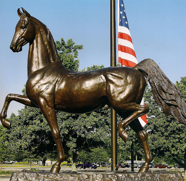 冬日,位于美國中部的萊克星頓(Lexington)沒有寒意,天還是那么湛藍,風也不知躲到哪里去了。周六,兒子休息,說帶我去市里逛逛。我分外高興,心想,異國市區(qū)繁華熱鬧,風情萬種, 一定會讓我大開眼界。我們漫步在起伏的公路上,置身于廣闊的大自然中,置身于萬籟俱寂中。我放眼望去,往日綠色的草坪夾雜些許黃色,樹林間隱約可見宅邸,偶爾路邊有白色的圍籬。松樹雖然翠綠,但因為是落葉松,所以松針稀稀落落掛在樹上,黃色的松針散落在樹下。 我們到了市區(qū),走了一段路,幾乎沒有行人,是在較高的建筑群中穿行,清冷帶來少許恐懼。見到幾家店鋪,但都關門。透過窗子,看到是賣衣服的,賣鐘表的,物品也不多。迎面來一位老女人,白皙的臉龐,藍眼睛,拖著行李箱,向我們討錢,說是打電話,要零錢,兒子給了她。 到了市中心一個不大的廣場,聽到淙淙的流水聲,尋聲望去,是人造的小型瀑布飛速其間。十幾個美國人,在樹下休息,樓前幾匹非常醒目的馬塑像吸引了我們。塑像有真馬那么大,金屬的,渾身涂滿鈾,白地還有紅綠藍黃等色的斑塊,不規(guī)則的斑塊邊緣是突起的金線,很像中國的景泰藍,在陽光下,熠熠生輝,光艷美麗。一匹狂奔揚蹄的馬,活靈活現(xiàn),雕塑者將靈魂里的歌聲流瀉到馬步上--大地就是琴鍵,馬蹄踩踏在音樂上,一股泉流般的樂音從馬蹄下升起,把你和馬一起浸入其中。這些馬塑像,真是巧奪天工,惟妙惟肖。 我有些不解,為什么市中心擺放馬的塑像?兒子告訴我,肯塔基州盛產(chǎn)早熟禾屬的草,這種得天獨厚的綠草(Blue Grass)是最好的馬料,而其他地方?jīng)]有這種馬最愛吃的草。據(jù)說如果將這種草移植到他處,也沒有長在肯塔基那樣的效果??纤恰扒嗖葜荨?,正因為擁有綠草(Blue Grass),肯塔基良馬中心能夠培育出世界一流的種馬。這里養(yǎng)馬、賽馬業(yè)以及與馬相關的產(chǎn)業(yè)非常發(fā)達,肯塔基擁有“世界馬都”之稱。我明白了前幾天在報紙上看到的肯塔基人的名言:“將自己的全部使命牢記于心,那就是將榮譽和崇敬帶給我們的馬兒,因為它們給予我們的要比我們能給予它們的多得多?!瘪R是萊克星頓甚至肯塔基州的標志! 兒子提議去馬公園,我的興致來了。心里想象著公園華麗高大的門,形態(tài)各異的馬,說不定還有中國的千里馬呢。沿著寂靜的人行道前行,撲入視野的是綠與淡淡的黃,遠處一帶綠色小丘,丘上馬兒一群,分散著。心想,這里真是養(yǎng)馬的地方。走到小丘,定睛看,哪是真馬?哪是活馬?是塑像!形態(tài)各異的塑像!有的馬仰首長嘶,有的馬低頭吃草,有的兩馬親昵,有的馬兩前蹄子高高抬起,做奔跑狀 一對小馬嬉戲,那份童稚天真,那份童趣,或許他們天生就是一對?雕塑者竟然塑造得如此這般鮮活,讓人油然而生愛意。它就像是鄰居家的青春少女,臉上洋溢著愉快的光輝,豐腴的前腿叫人想偷偷伸過手去摸上一摸。瞧,它那脈脈含笑的樣子,應該是不會生氣的。我情不自禁地用手撫摸它,敲敲它。金屬雕塑,顏色黑中略帶綠,大約是銅的。 再看看周圍,空空蕩蕩,什么也沒有,連柵欄都沒有,幾尊塑像散落在小丘上。這哪是公園?我不解。兒子告訴我說:“美國的公園設計對場地和環(huán)境的現(xiàn)狀十分重視,不去輕易改變它們,而是盡可能發(fā)揮場地的特征和優(yōu)點,消除不利因素,將人工因素融合到自然因素之中?!蔽蚁耄@樣的公園,能使市民很快融入不受城市喧囂干擾的自然環(huán)境中,城市公園就成了自然的天堂,這種建設理念也正確。 次日,星期天,兒子開車帶我去美國馬鞍博物館(American Saddle Horse Museum)和肯塔基馬公園(Kentucky Horse Park)。從肯塔基大學出發(fā),走75號公路北120出口。在路上我們看見很多美國人開車去教堂。也看見一種專門運送馬匹的汽車,汽車的窗子很大,馬自由自在地將頭伸出車窗外,忽閃大眼睛,左顧右盼。馬兒,你是透氣,還是觀看一路風光呢?這是肯塔基公路上的獨特風景。 肯塔基馬公園,一米左右的矮墻,上面刻有建公園的時間,非常簡單的英文。我一計算,竟然有百余年的歷史了。公園很大,占地面積1032英畝,大得讓人感到空曠。公園正中央, 一尊巨大的馬塑像屹立于壇上。那是曾經(jīng)在美國獲得三連冠的賽馬John Henry的塑像,它揭示了這公園是以馬為主題的公園。在壇前面還寫著“走近馬”、“進入馬的世界”的英文。 塑像顯現(xiàn)賽馬John Henry無與倫比的強壯和俊美勻稱,頸項上披散的鬣鬃長長的,散發(fā)著力與威嚴,雄渾的馬蹄洋溢著奔放與靈氣,它英氣勃勃的神態(tài),讓我堅信這匹馬能思考,有感情。雕塑者用他精巧的手,聰明的智慧,將這匹馬的筋骨、血脈、氣韻、精神惟妙惟肖地鑄成銅像。銅像是力與美的巧妙結合。瞻仰銅像,我仿佛看見賽馬John Henry平日輕快地小跑,噴著鼻息,四蹄發(fā)出有節(jié)奏的聲音,看見它在賽場上跳躍,起伏,奔馳,最后大顛地狂奔,更看見它獲得冠軍榮耀自豪的樣子。塑像左側,是“馬國際博物館”和“美國鞍馬博物館”,介紹太約50個品種的馬,有兒童騎的矮馬,成人騎的高馬,純種賽馬等。還有些關于馬母與子親情,純種馬冠軍,以及偉大的賽馬John Henry退休后,在這里享受到特別照顧的介紹。最后,我們還觀看了馬的短片電影。 我們從這里得知:肯塔基馬公園,近日榮獲了由三家最著名的純血馬產(chǎn)業(yè)機構頒給的Eclipse大獎。2010年世界馬術錦標賽將
