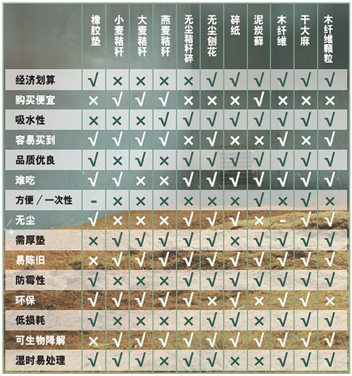 四個(gè)簡(jiǎn)單的步驟就能以最低的成本還你一個(gè)干凈的馬房。 哪種墊料是最好的? 現(xiàn)在你知道如何有效利用馬房鋪墊,但你是否使用的是最合適的墊料呢?有這么多不同類型的墊料供應(yīng),如何選擇最好的材料的確很難。你需要考慮很多因素,然后再做出決定。 你的馬有呼吸道疾病嗎? 如果有,你就需要選擇無塵的墊料。 你的馬老吃鋪墊嗎? 如果是這樣,用一些它不愛吃的材料以避免浪費(fèi)。 你的預(yù)算緊張嗎? 如果你只擔(dān)心錢不夠,就選擇更省錢的方式。但是記住,即使一張橡膠墊看起來似乎很貴,長遠(yuǎn)看來它卻是相當(dāng)經(jīng)濟(jì)實(shí)用的。 想要環(huán)保? 如果你在尋找較為環(huán)保的墊料,這里有一些不錯(cuò)的選擇。 你有多大的儲(chǔ)存空間? 如果你正計(jì)劃批發(fā),那么選擇貯藏時(shí)不易發(fā)霉的材料。 當(dāng)你確定以上問題的答案,接下來看看下面的表格,你一定能做出最滿足你和馬需求的選擇。 |