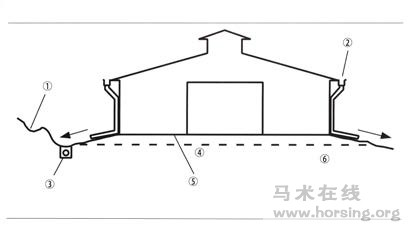上一期我們介紹了場地規(guī)劃的幾點(diǎn)建議,文中提及的相關(guān)要點(diǎn)是幫助你判斷什么類型的庇蔭處和戶外活動區(qū)可以滿足設(shè)施目標(biāo),以及提到合理的排水系統(tǒng)需要考慮地表水流和地下水資源,糟糕的排水會比任何規(guī)劃因素引起更多問題。任何設(shè)計成功而且考慮周密的布局,都會被不合理的排水系統(tǒng)而毀掉。本文將繼續(xù)探討馬術(shù)俱樂部布局特點(diǎn)中必有的布局元素:俱樂部建設(shè)的“排水系統(tǒng)”問題。 圖片標(biāo)注: ①梯級分流的排水路線可以阻止水流向下 ②排水溝和水落管 ③排水溝中地下排水瓦的使用,利于地面水的滲流,同時,建筑周邊植被使地面水分流 ④原基準(zhǔn)線 ⑤建筑地面距原基準(zhǔn)線約0.3 米,相對于地面水是“高地” ⑥與建筑呈1:3 比例的坡度利于水流的運(yùn)動 注意:不要把水直接排到自然水路 -------------------------------------------------------------------------- 馬房位置在山丘附近,需要提前計劃好水處理的問題,避免在建筑完成后,耗費(fèi)巨資改進(jìn)排水系統(tǒng)。即使是建設(shè)平整的室外場地,在做布局規(guī)劃時,也要考慮排水問題。室外場地需要有微小的坡度,確保表面的水可以流走,而且場地建設(shè)時要保證周邊地面的水不會流進(jìn)場地。 若俱樂部內(nèi)部有小的斜坡,在其水平面建設(shè)馬房,勢必會遇到排水難題,把馬房建在斜坡上是最好的選擇。淺的混凝土溝渠可以轉(zhuǎn)移建筑表面的水,讓水沿著建筑坡度運(yùn)動,最后通過地下管道排走。 室外場地周邊可以建設(shè)覆蓋植被的分流溝渠(diversion trench)。這樣的分流溝渠可以防止地面水流進(jìn)入室外場地和浸透地基。 如果沒有排水溝和排水管,寒冷天氣時,從屋面流下的大量的雨水和雪融水, 可以通過地面排水設(shè)施來處理, 如鋪了沙礫的毛石排水溝(french drain)。 建筑周邊經(jīng)常出現(xiàn)積水的問題可以得到解決,要防止雨水和雪融水積聚在建筑周邊,或馬糞存放區(qū),或行車道,可以實(shí)施不同的坡度建設(shè),在排水的同時,攔截外來積水。最節(jié)約成本又有效的方式就是利用排水溝和水落管(downspouts)。室內(nèi)場館和大型馬房房頂排出的大量的水最好通過地坪(building pad)排走,這點(diǎn)非常必要。另一種情況,在降雪量大、容易形成冰壩的地區(qū),下水道的作用受到嚴(yán)重影響,屋檐留下的水和雪融水通過地坪排走。最好是能把水排走,而不是讓水流到建筑地面或是流到一堆泥土里。 建筑周邊經(jīng)常出現(xiàn)積水,這種情況無法容忍,但問題可以得到解決。要防止雨水和雪融水積聚在建筑周邊,或馬糞存放區(qū),或行車道,可以實(shí)施不同的坡度建設(shè),在排水的同時,攔截外來積水。 路面磚對泥土的限制 如果建筑地面相對較高,相應(yīng)的排水系統(tǒng)確保了建筑物的干燥,這就意味著馬場的其他設(shè)施在排水方面會不盡人意。不管是維護(hù)草坪還是潮濕的地面,可以通過鋪設(shè)路面磚或堅固的剛性材料(rigid material),確保馬匹和輕型車輛可以通過,還要同時容納定期的水流(如地下水補(bǔ)給區(qū)內(nèi))。在鋪設(shè)路面磚或剛性材料前,用泥土將地面鋪平。 地面磚有很多不同的尺寸和形狀,每塊磚之間緊密相扣,每個表面均留出相應(yīng)空間,行人、馬匹、機(jī)動車都可以通過。路面磚的原材料通常為混凝土。剛性材料使用抗紫外線的纖維增強(qiáng)聚乙烯(UV-resistant fiber reinforce polyethylene)也是可行的。水流可以從地面鋪筑材料表面的空隙直接滲透。在一些設(shè)計中,有些鋪筑材料表面留的空隙很大,有的則很小。選擇空間小的路面材料是為了防止馬匹蹄部卡住。路面磚表面的空隙尺寸需要小于約10cm,應(yīng)該在2.54-5.09cm 之間,這樣馬匹可以舒服地通過。同樣,使用馬匹專用剛性材料作為鋪筑材料,空隙要足夠小,防止馬匹蹄部卡住。 資料搜集與整理/王彥桃(天星調(diào)良馬術(shù)) 圖/天星調(diào)良國際馬術(shù)俱樂部 |