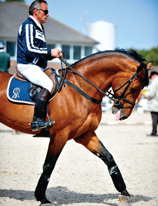 不可姑息失誤動作 在開始一節(jié)訓(xùn)練課之前,提醒自己一定要遵守紀(jì)律,也就是說絕不可以放過任何一個失誤動作,錯了,就要立即改正。對于不愛邁步的馬匹而言,最重要是要讓它一直有向前的意識-如果騎手要求它向前,它就必須向前走。在騎手做出動作要求時,許多聰明的馬都會采取逃避戰(zhàn)術(shù),而不是乖乖地打開步子。也就是說,在慢步中要求它們做伸展步伐時,馬匹會直接快步起來(如圖2 所示)。因?yàn)樵隈R匹看來,直接變換一個步伐比在同一種步伐中拉長身體更容易完成。有些馬匹經(jīng)常會采用西班牙步(Spanish walk)、原地踏步(piaffe) 或斜橫步(passage)來逃避騎手的此類要求。騎手的任務(wù)便是說服馬匹,正確地去完成動作才是最佳選擇。經(jīng)實(shí)踐檢驗(yàn),很多騎手發(fā)現(xiàn)最好的方法便是及時幫助馬匹改正錯誤,而不是一味地懲罰它們。如果馬匹動作有誤,可以讓它停下來,重新再做;如果做對了,立即拍撫它,這種鼓勵的方法會讓馬匹受益匪淺(如圖3 所示)。在訓(xùn)練中,嚴(yán)格要求自己和馬匹,絕不可姑息任何一個細(xì)小的失誤。每位騎手和馬匹的能力各有不同,通過練習(xí)得到改善所需的時間自然也有長有短,但是通過騎手與馬匹的共同努力,久而久之,一定會有很大的成效。 多要求些動力 針對不情愿向前的馬匹,不妨放心地去多要求些,調(diào)動它的能量。在不同的步伐變換中,都會存在一個臨界點(diǎn)。也就是說,在某一點(diǎn)上,馬匹就會從慢步變換到快步,從快步變換到跑步。因此,洞悉到這個臨界點(diǎn)是非常重要的。騎手所要做的就是不讓馬匹越過這些臨界點(diǎn)。如果馬匹不愿向前,騎手可以暫時忘掉手韁的接觸,不去管馬匹前肢的狀態(tài)。實(shí)際上,如果馬匹特別懶,完全不聽從指令的時候,就把韁完全給它。騎手要多用腿及韁繩,鼓勵馬匹做出動作,然后當(dāng)馬匹有所回應(yīng),依照指令的時候,重重地拍它一下,并慢步,以示獎勵;接著再做快步,多給一些命令,這樣馬匹才會真正跟上訓(xùn)練的節(jié)奏。相反,如果騎手一味地遷就馬匹,訓(xùn)練的效果只會適得其反。 如果馬匹特別懶,完全不聽從指令的時候,就把韁完全給它。 一段時間后,馬匹開始真正地打開步子,隨著背部的拉長,脖頸也伸展了。這種練習(xí)可以幫助馬匹身體變得更加柔軟,對騎手的指令回應(yīng)得更快且準(zhǔn)確。 最后,讓我們來總結(jié)一下要點(diǎn):