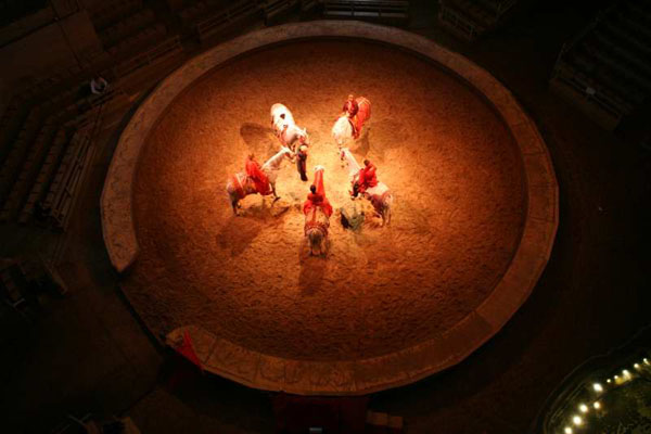 只有當(dāng)人馬之間建立一種高級別的交流溝通,并且是一種文雅并富有禮節(jié)的交流的時候,才可以被稱之為“馬術(shù)藝術(shù)”?!咸蜒乐T手Numo Oliverira(1925-1989) 從馬匹被人類馴服以來,這種集多重功能于一身的生物便長久生活在人類的社會中。從農(nóng)用到運輸,從戰(zhàn)爭到娛樂,可以說,人類每一階段的歷史,都有馬存在的痕跡,在人類文明史中,它扮演著不可替代的角色。法國著名馬術(shù)表演師Pignon 夫婦曾經(jīng)說過:“馬文化的歷史幾乎就是世界的歷史?!?/div> 時至今日,在眾多與馬有關(guān)的活動中,無論是競技項目還是藝術(shù)表演,因為涉及到人類以外的生命參與,馬術(shù)表演無疑是最有觀賞性并能引起觀者共鳴的。從廣義上說,馬術(shù)運動與騎馬本身有著同樣久遠的歷史,但經(jīng)過現(xiàn)代人的思維模式分析,現(xiàn)存于世的各種表演大致分成三類,一種是脫胎于軍事訓(xùn)練的古典馬術(shù),一種為更具有舞臺戲劇效果的現(xiàn)代表演馬術(shù),另一種則是在民間經(jīng)常見到的馬背表演,三者之間似乎涇渭分明,層次高低立現(xiàn)。但是,應(yīng)該這樣簡單地分清陣營么? 從歷史角度來說,古典馬術(shù)最早應(yīng)用于軍事訓(xùn)練中,和其他許多馬術(shù)項目一樣,各種動作、隊形,都是為了讓騎兵從中可以學(xué)會如何操控馬匹以及在團隊中有序地行動。騎兵籍此訓(xùn)練可以培養(yǎng)良好的步伐、間歇和距離感。在訓(xùn)練和實際行進過程中,學(xué)會排序、靠攏、分散并控制好與其他人之間的間距,這讓騎手的注意力不能有絲毫的松懈,他們必須正確估算出距離與速度,訓(xùn)練自己的本能及與馬之間的配合默契。同時,在訓(xùn)練中,馬匹也要學(xué)會各種圖形、急轉(zhuǎn)彎、不同步伐之間的轉(zhuǎn)換,以及勻速地對向、相向或交叉行進。 在藝術(shù)繁榮復(fù)興的巴洛克時期,古典馬術(shù)也空前繁榮。以精湛、嫻熟的技藝,騎著優(yōu)雅的馬匹,表演各種技藝或組成各種圖形,成了貴族們炫耀自己馬匹和及騎術(shù)的最好機會。這種流行一時蔚然成風(fēng)。1662 年,路易十四組辦了馬術(shù)競技大會,成為歷史上最著名的馬術(shù)表演;1667 年維也納皇宮上演了“馬術(shù)芭蕾”,盛況空前。在名稱中我們可以看到軍事訓(xùn)練的痕跡已經(jīng)很模糊了。熱兵器時代來臨后,騎兵已經(jīng)逐漸喪失了他們的軍事基礎(chǔ),但古典馬術(shù)的精湛與高雅在馬術(shù)訓(xùn)練中仍然具有極高的價值。 隨著古典馬術(shù)在戰(zhàn)爭中作用的減弱至消失,馬術(shù)表演卻更加賞心悅目起來,發(fā)展到了現(xiàn)代,逐漸加入了更多的元素,比如現(xiàn)代舞臺上的聲光電,人馬表演也被加入了更多的戲劇元素。變成了傳統(tǒng)古典馬術(shù)表演之外的另一種表演形式。世界上最好的現(xiàn)代馬術(shù)表演都集中在歐洲,法國、德國、英國、荷蘭、葡萄牙、西班牙等國家都有非常有名的現(xiàn)代馬術(shù)表演師。這些表演師同現(xiàn)場的馬匹一起,或舞蹈,或嬉戲,配合著場內(nèi)色彩絢麗的燈光、婉轉(zhuǎn)流暢的配樂,更像是一場馬主題的夢幻舞臺劇?,F(xiàn)在這種表演形式已經(jīng)融入了一些大型的馬術(shù)賽事、馬展和一些與馬相關(guān)的大型活動,在開賽前或是活動間隙,吸引更多的觀眾進入場地,起到渲染和烘托氣氛的作用。 相對于上面兩種表演形式來說,馬背技巧類的表演雖然也與馬匹有關(guān),但因為馬戲是為大眾娛樂服務(wù),馬背雜技則更傾向于讓馬持續(xù)而單一地在長韁控制下奔跑,而人在馬背上做各種動作,人與馬之間的情緒互動相對于前面兩種演出要少得多,所以被納入“馬術(shù)藝術(shù)”范疇的理由并不是那么強勁有力。其實,還有個理由,在最初的馬戲團表演中,馬匹的地位與其他動物相同,都是作為道具,而馴練馬匹的都是馴獸師,并非現(xiàn)在意義上的馬匹調(diào)教師。 從廣義上說,“馬術(shù)娛樂”包羅萬象,馬匹不過是表演工具而已,但馬術(shù)運動發(fā)展到現(xiàn)代,是現(xiàn)有的體育競技項目中唯一一項由人和動物一起完成的項目,它要求人和馬成為一個整體,延展至各種與馬有關(guān)的表演,其實這考驗的是人與馬之間的相互理解、相互尊重乃至相互默契。馬戲在逐步發(fā)展中已經(jīng)漸漸脫離“動物道具”這一身份。事實上,在1983 年被國際馬聯(lián)正式認證為馬術(shù)比賽項目的馬背體操,最早的雛形就是在馬戲中的運動員在馬背上閃轉(zhuǎn)騰挪發(fā)展而來。馬背體操選手對于馬背上的運動具有非常敏感的感知度,匈牙利的特技騎手Joe Turi 就因其敏銳的馬匹感知度而轉(zhuǎn)行到了場地障礙項目,并成績驕人。更何況,最早的馬戲訓(xùn)練是以“馬術(shù)藝術(shù)”為基礎(chǔ)的,不能將所有用于娛樂大眾的馬匹表演一概而論。 說了這許多,其實筆者倒是認為,無論是古典馬術(shù),還是絢麗的舞臺劇,或者是技術(shù)高超的馬背技巧,每個概念并不能說明什么問題。在比利時溫血馬協(xié)會工作多年的Soloman Lam 先生認為,任何具有欣賞性和娛樂性的事物都可以稱之為藝術(shù),這本就是個見仁見智的問題。無論人與馬身處何地,他們之間的良好溝通,行為上的互相認同,感情上的相互依賴,精神層面的升華,才是讓觀者與自己都為之神往的源頭。 創(chuàng)作了C